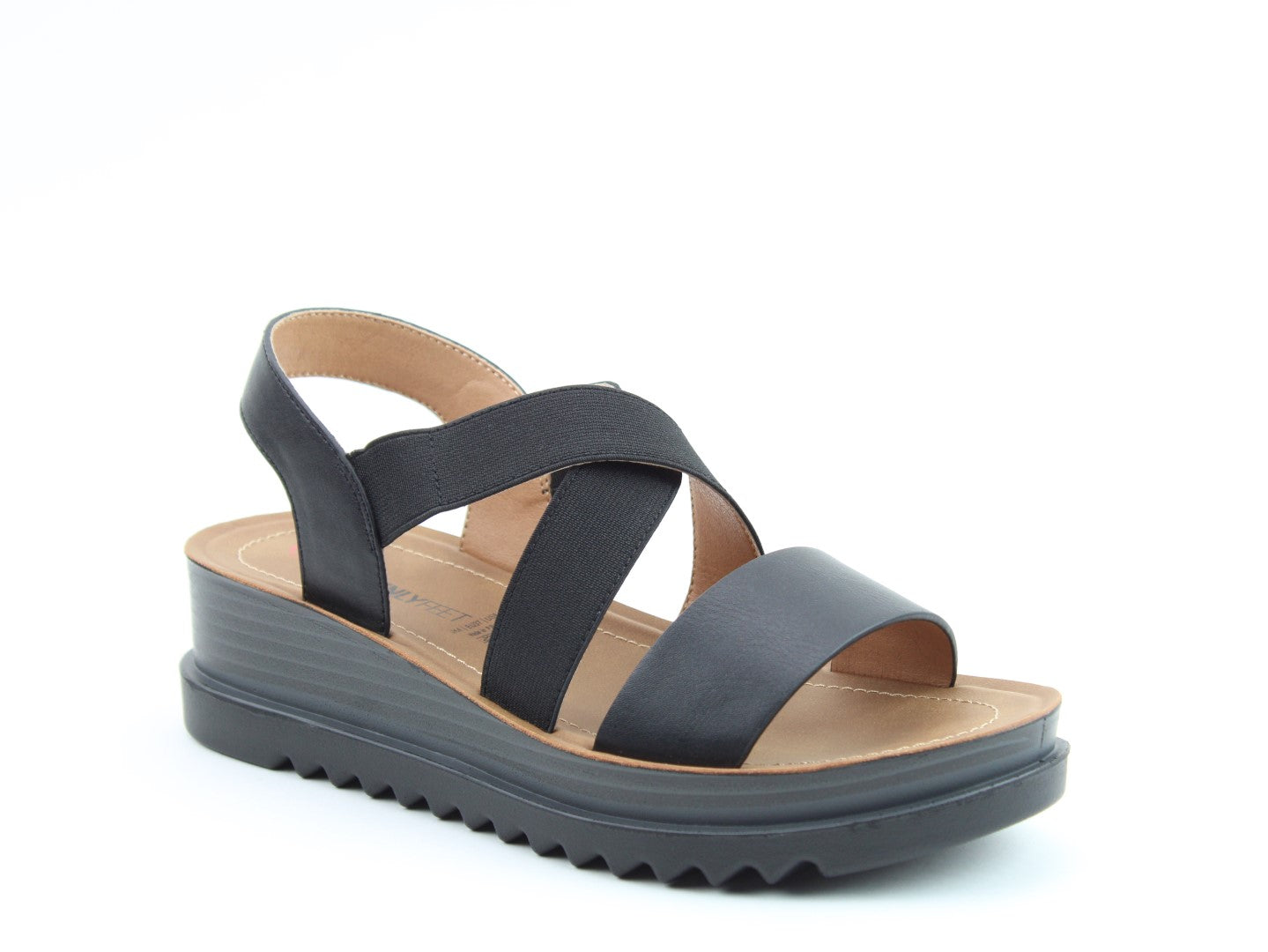 Experience effortless elegance with the low-wedge Abel sandal, a must-have for warm weather adventures. Designed for all-day comfort, this sandal features a soft vegan-friendly upper with an elasticated cross-strap for a secure fit. Its padded foot-bed and lightweight sole ensures a cushioned feel with every step, while the chic minimalist design makes it the perfect pairing for both casual and dressy outfits alike.