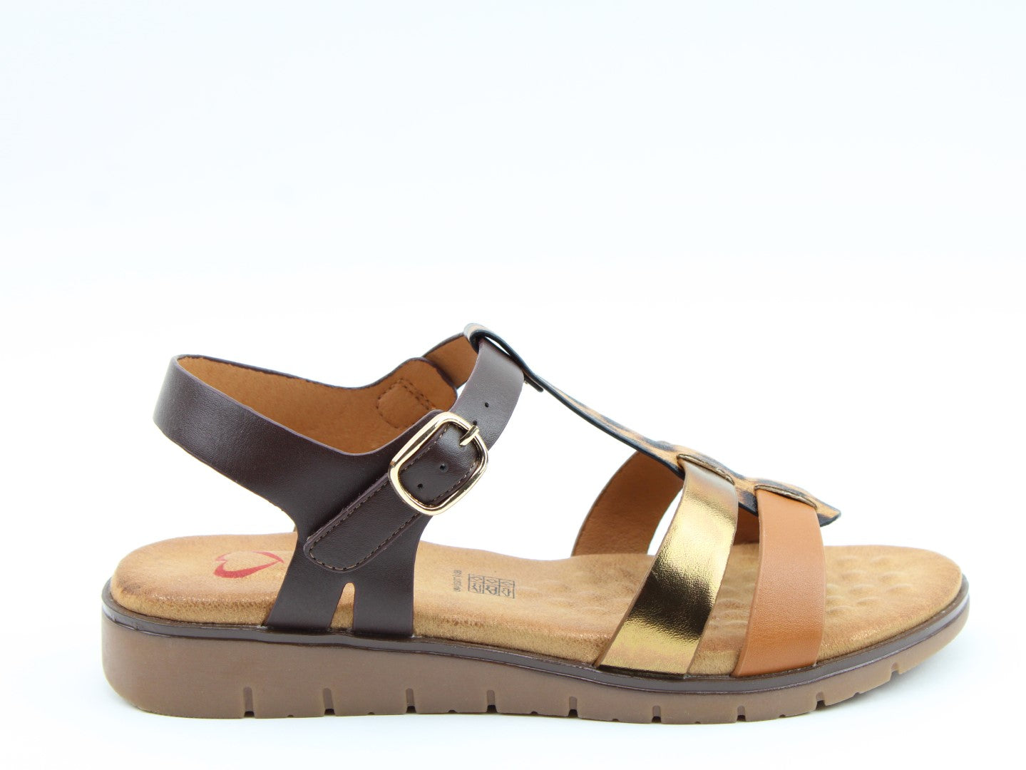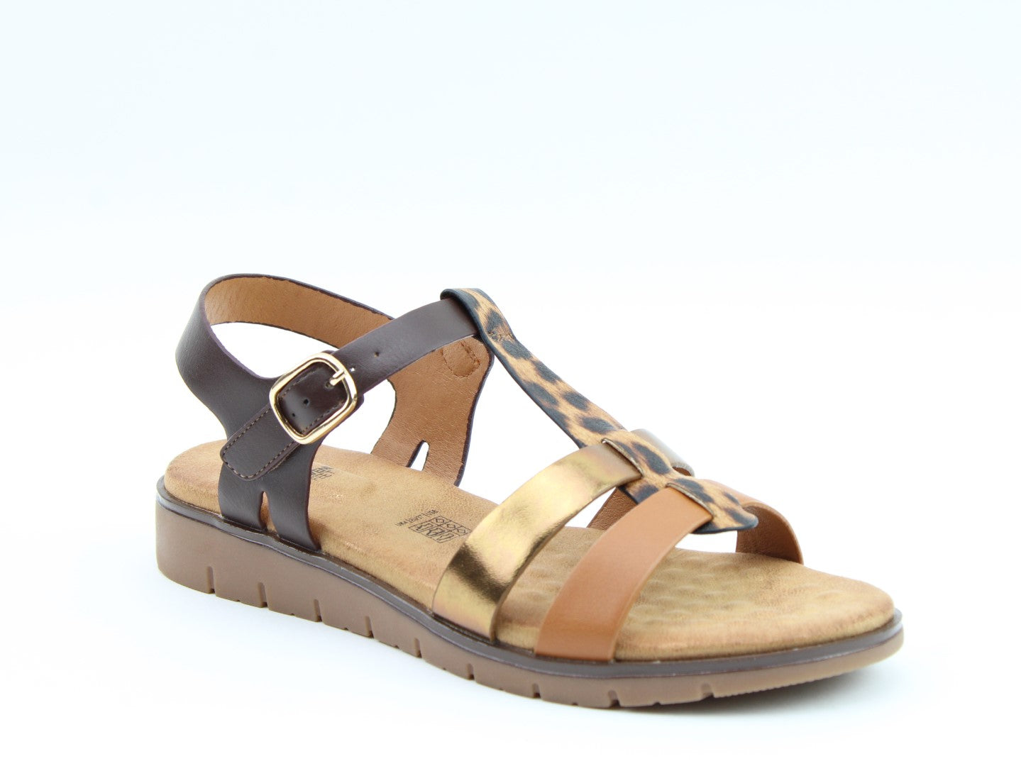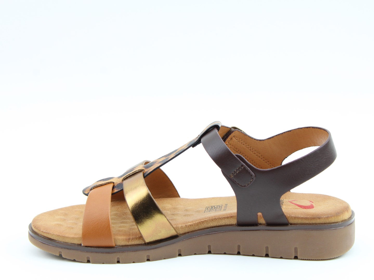 Billie is a statement sandal combining mixed textures and finishes, including metallic and animal print straps (dependent on colour chosen). The soft-touch multi-strap design offers both style and structure. With a fixed ankle strap and faux buckle combining Velcro style touch-fastening, Billie ensures a secure fit, while the cushioned sole supports all-day comfort. Perfectly suited to a wide range of outfits, this will be a go-to sandal this season.
