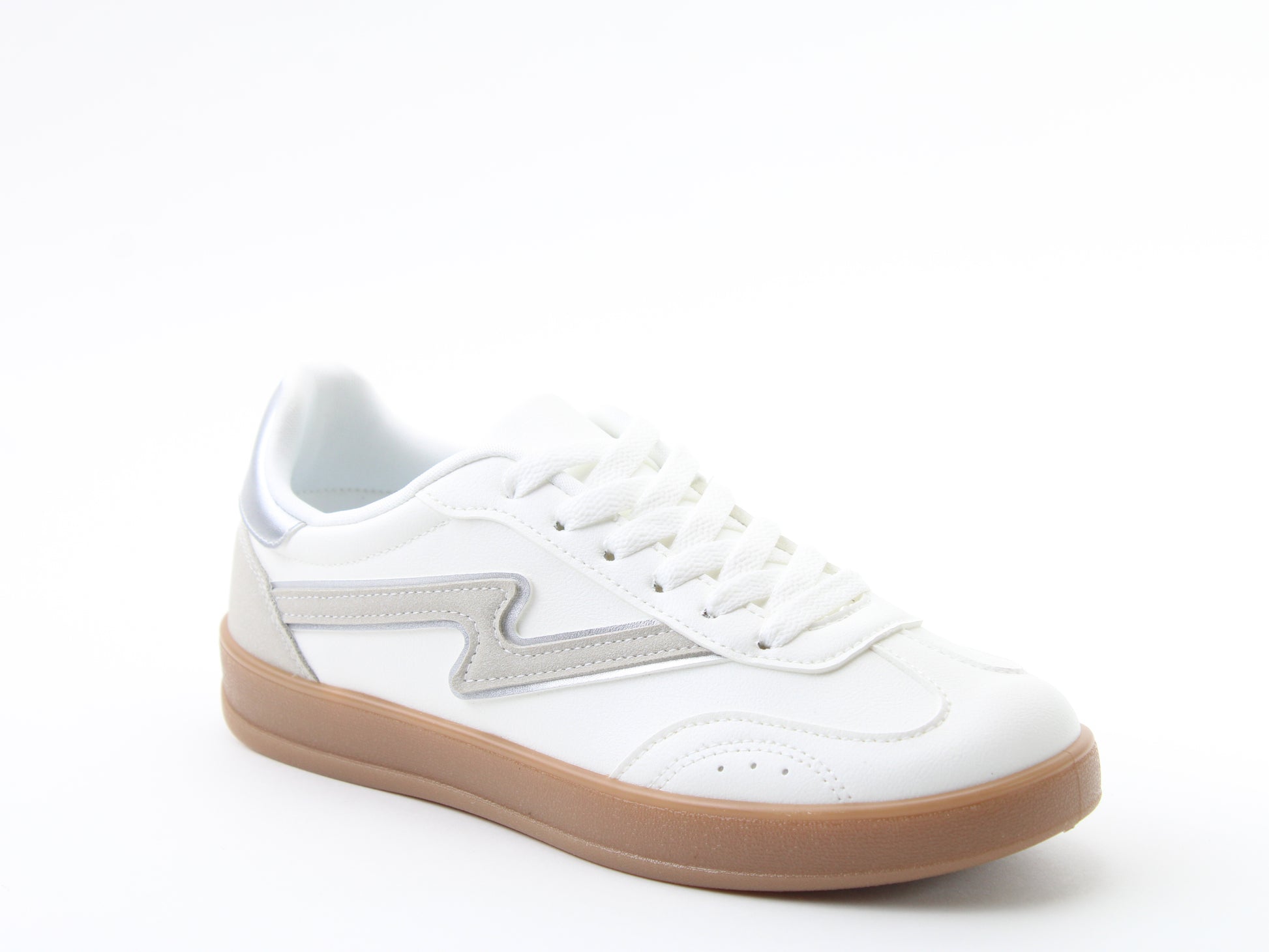 Step into sporty sophistication with the vegan friendly Bonnie trainer. Featuring a sleek lace design with retro-inspired gum sole, and a lightweight, cushioned fit, this trainer is a must-have for summer 2025. Designed for ultimate versatility, Bonnie pairs effortlessly with casual denim, active-wear, or even summer dresses. Stay stylish while enjoying all-day comfort.