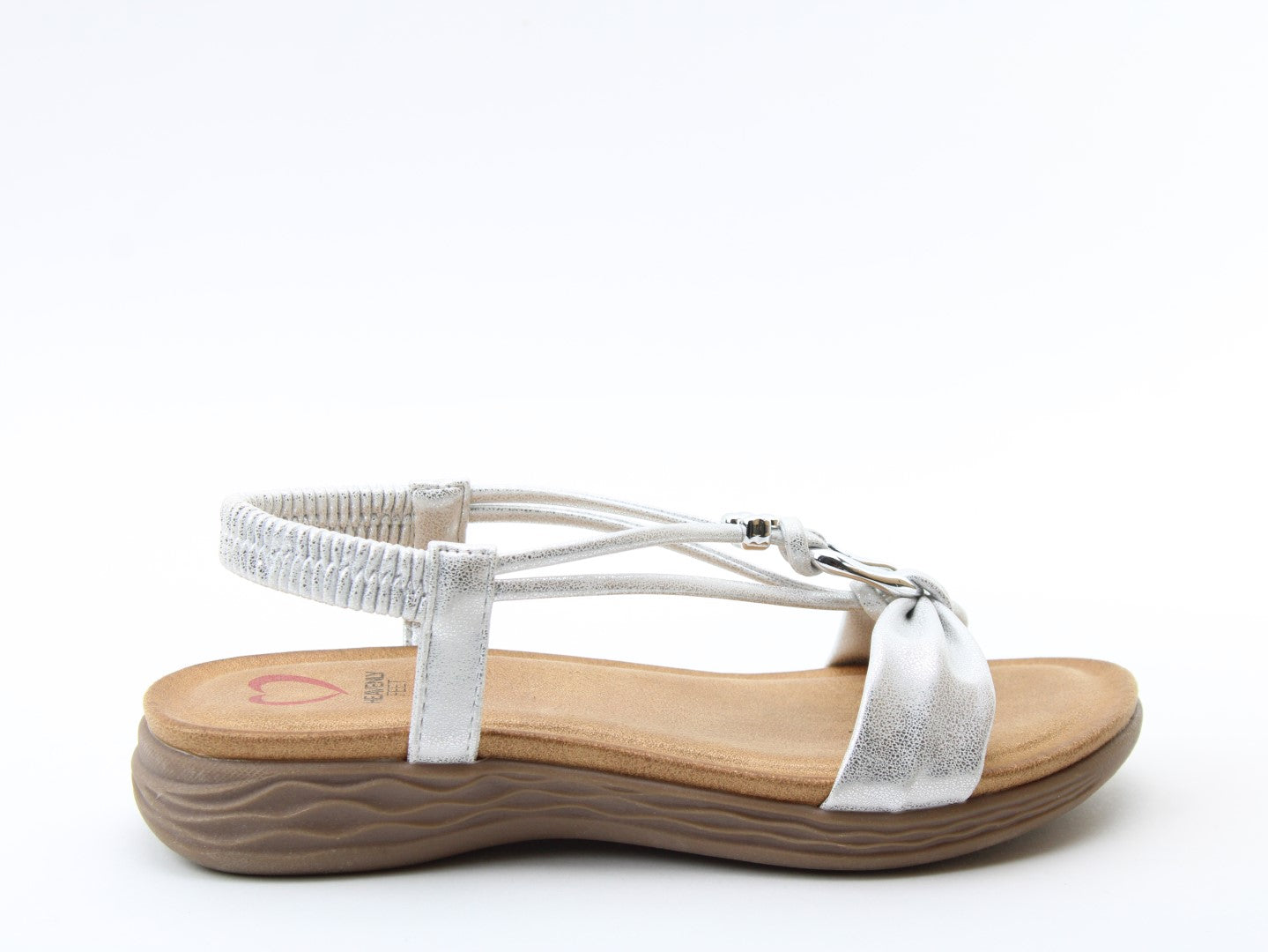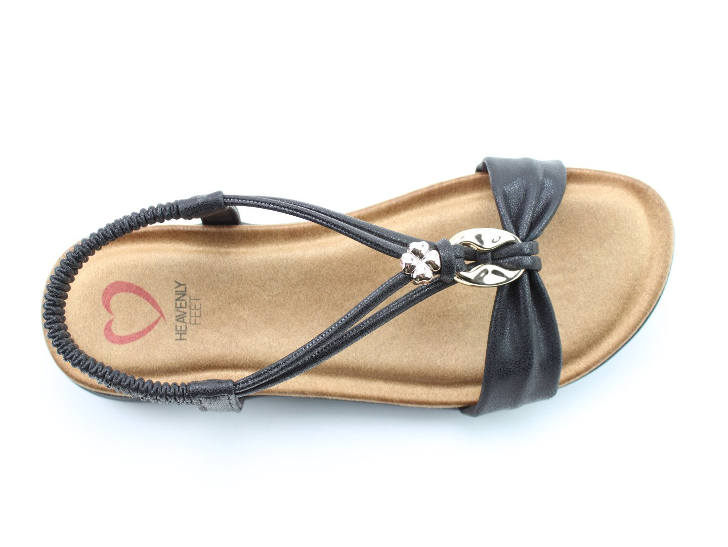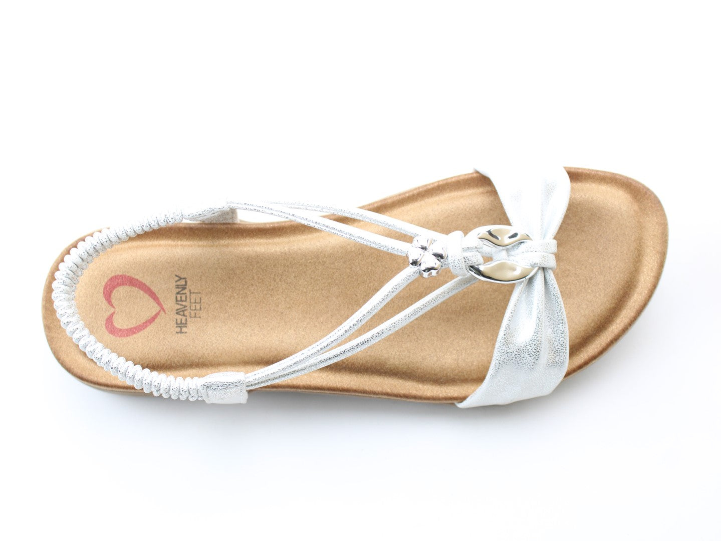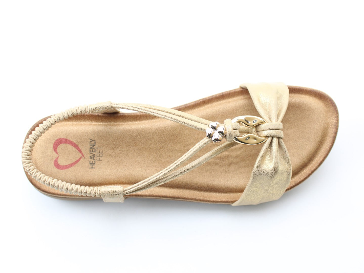 Effortlessly stylish with a touch of shimmer, the Chime sandal from Heavenly Feet blends comfort with statement detailing. This vegan-friendly style features a beautifully embellished T-bar design with eye-catching metalwork for a chic, dressy finish. The elasticated back strap provides easy wear, while the cushioned footbed ensures lasting support. Perfect for evenings out, summer occasions, or elevating casual looks.