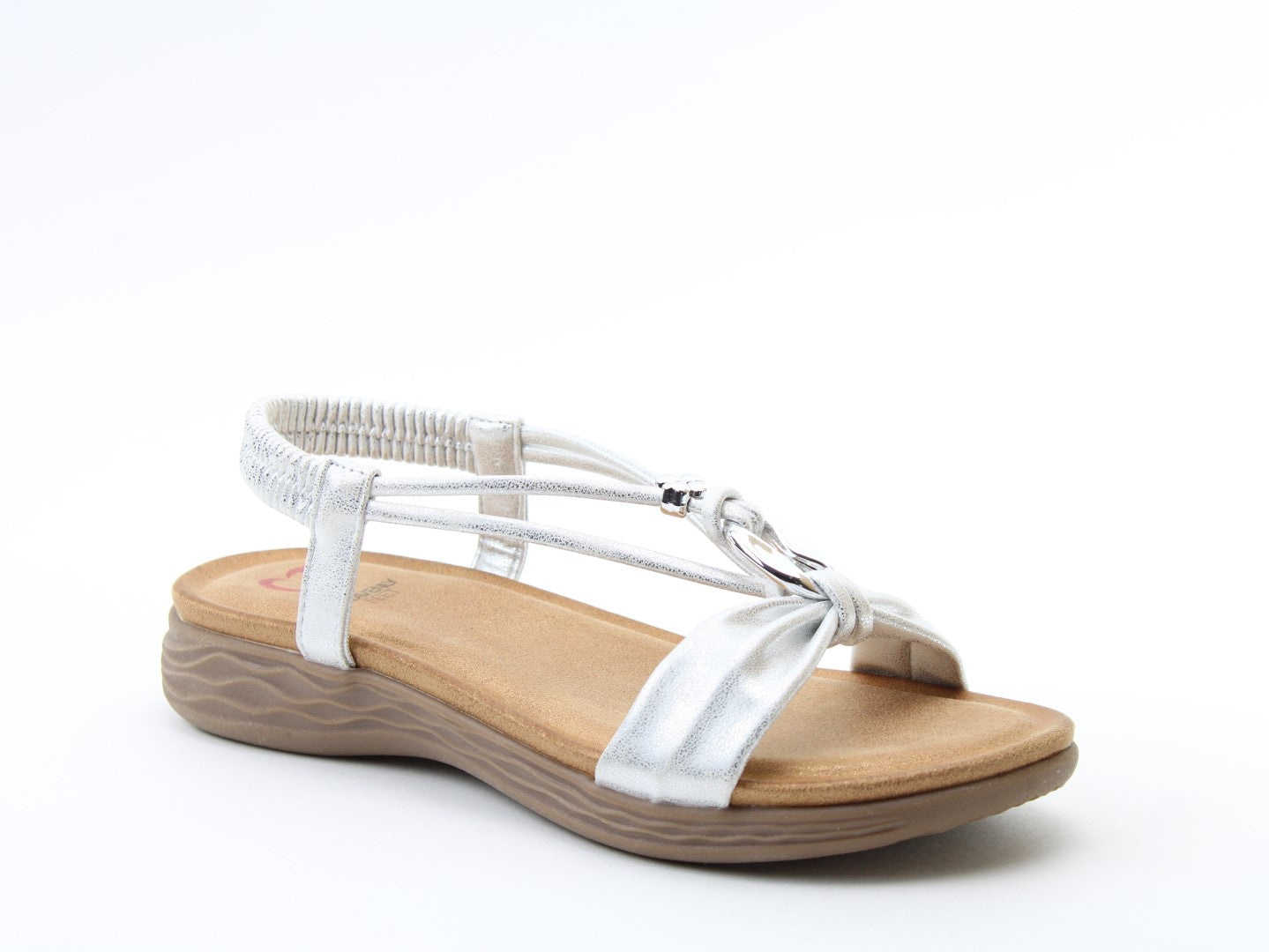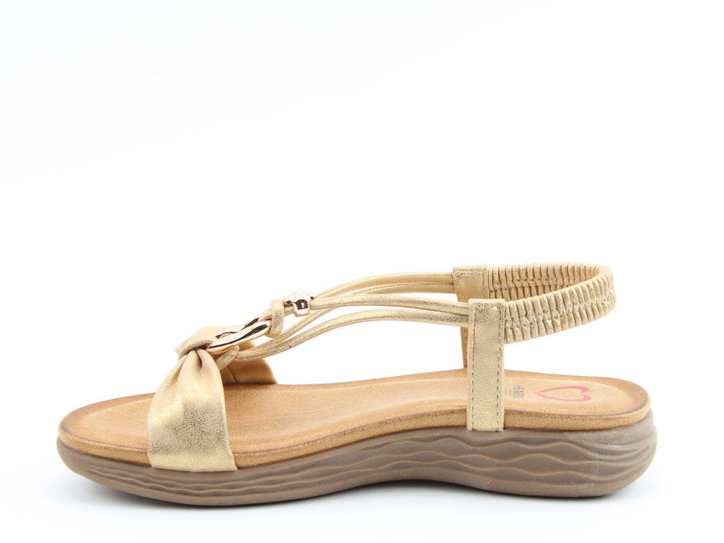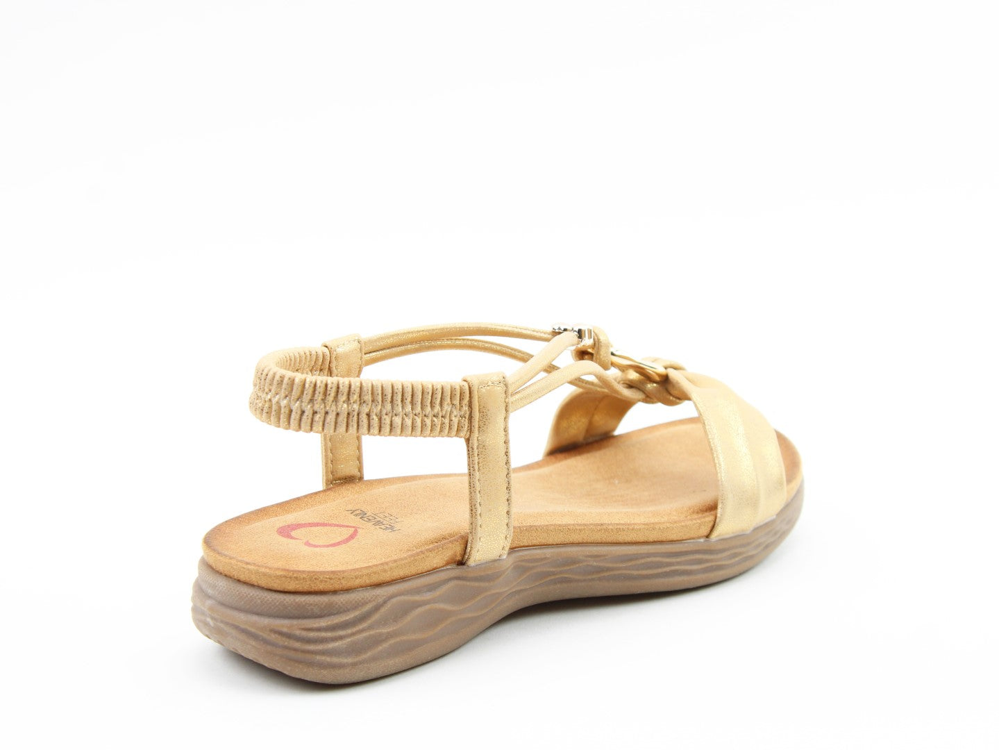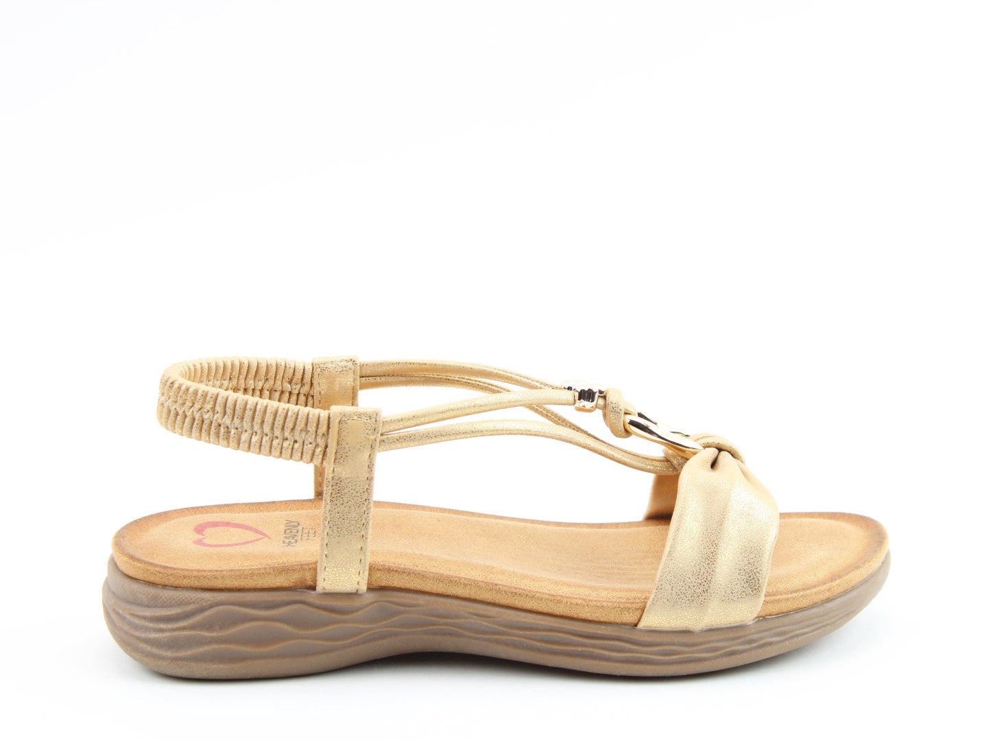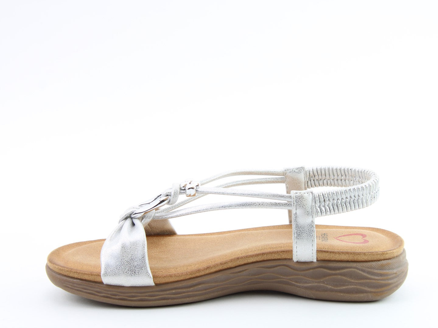 Effortlessly stylish with a touch of shimmer, the Chime sandal from Heavenly Feet blends comfort with statement detailing. This vegan-friendly style features a beautifully embellished T-bar design with eye-catching metalwork for a chic, dressy finish. The elasticated back strap provides easy wear, while the cushioned footbed ensures lasting support. Perfect for evenings out, summer occasions, or elevating casual looks.