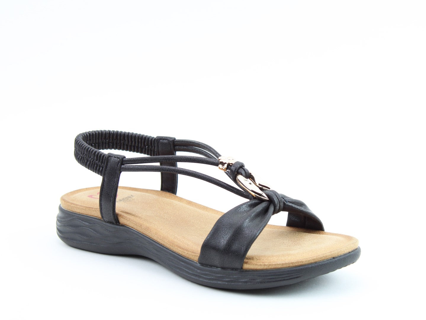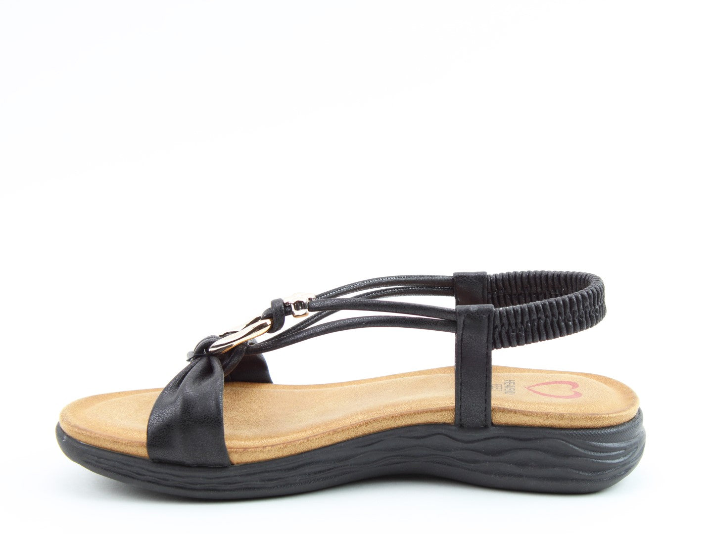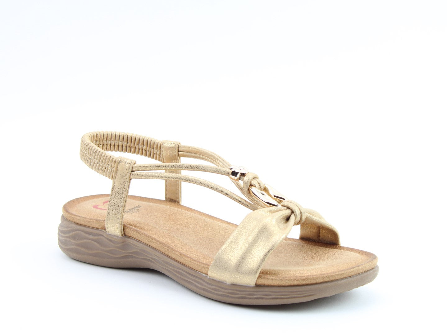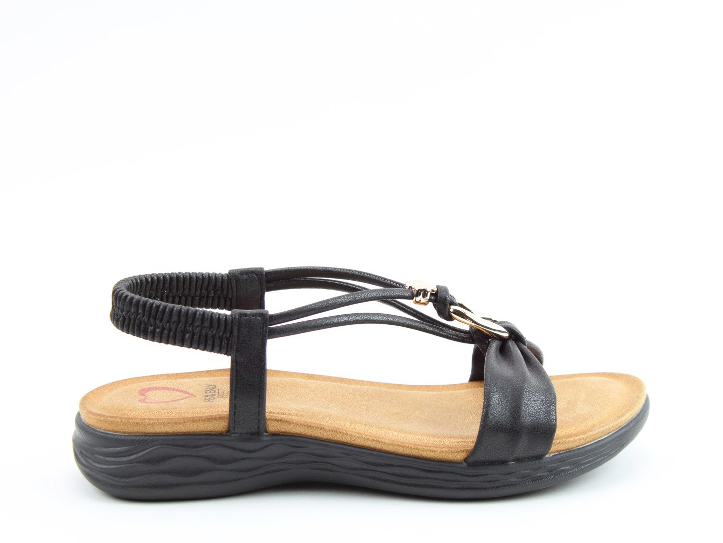 Effortlessly stylish with a touch of shimmer, the Chime sandal from Heavenly Feet blends comfort with statement detailing. This vegan-friendly style features a beautifully embellished T-bar design with eye-catching metalwork for a chic, dressy finish. The elasticated back strap provides easy wear, while the cushioned footbed ensures lasting support. Perfect for evenings out, summer occasions, or elevating casual looks.