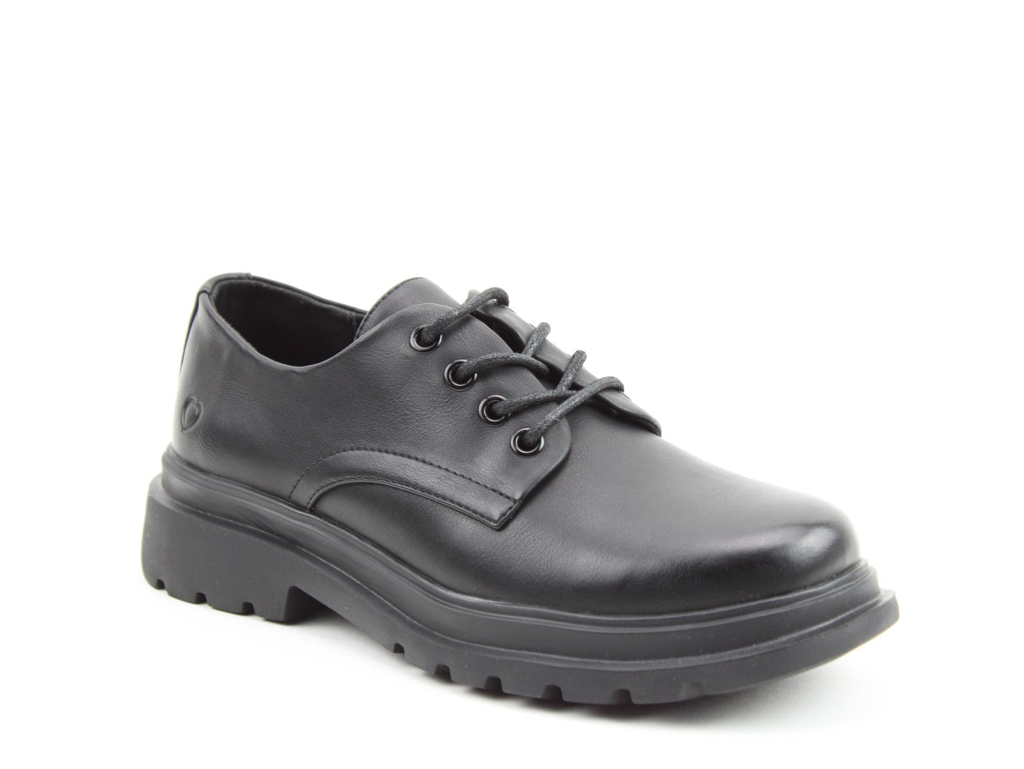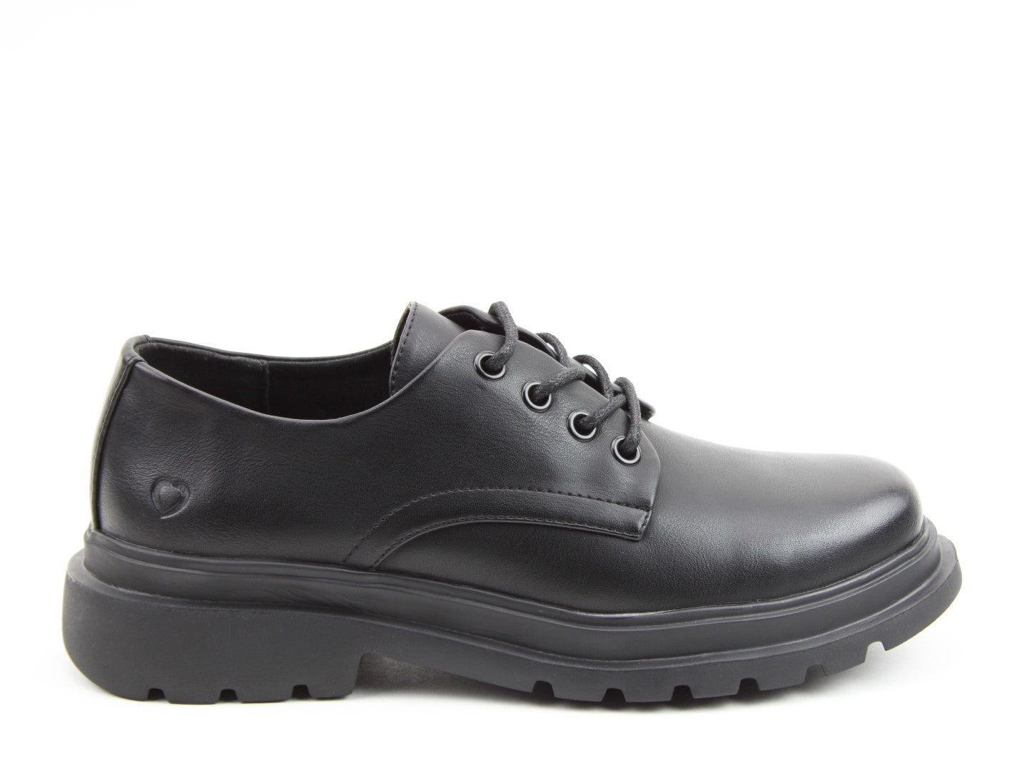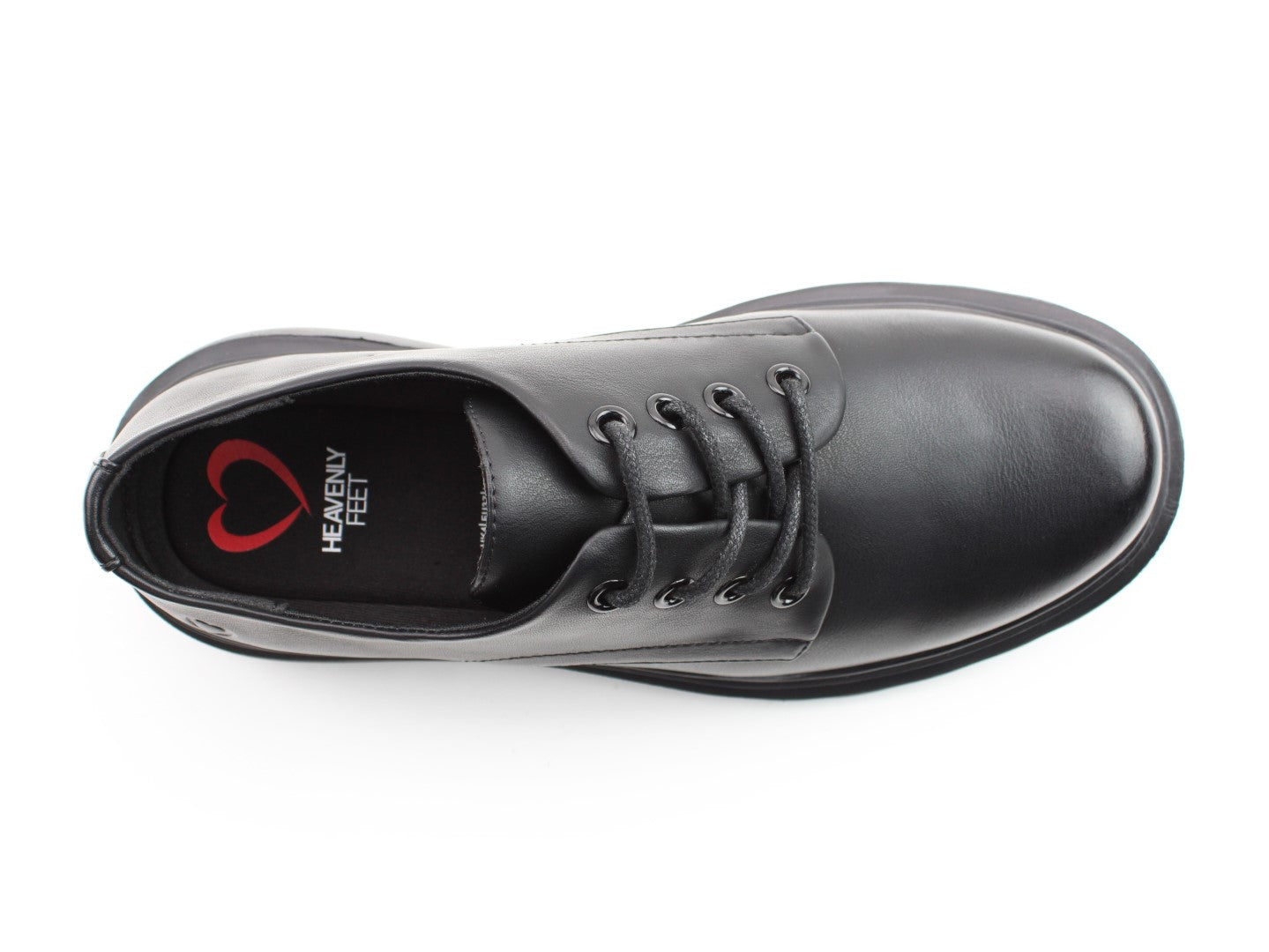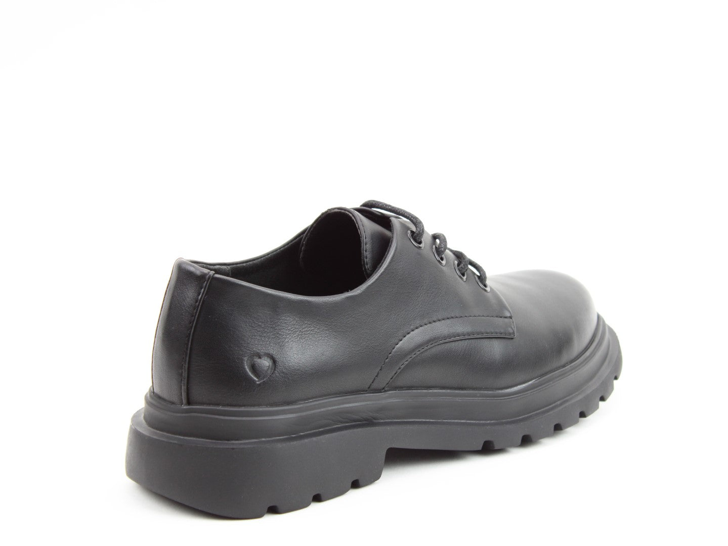 Introducing Cove - your go-to vegan-friendly lace-up shoe for smart comfort and everyday ease. Designed with a smooth black upper and chunky sole, Cove offers a modern take on classic school or work shoes. Whether worn in the office or on the weekend, it delivers comfort and confidence in every step thanks to a cushioned removable memory-foam insole and super lightweight design.