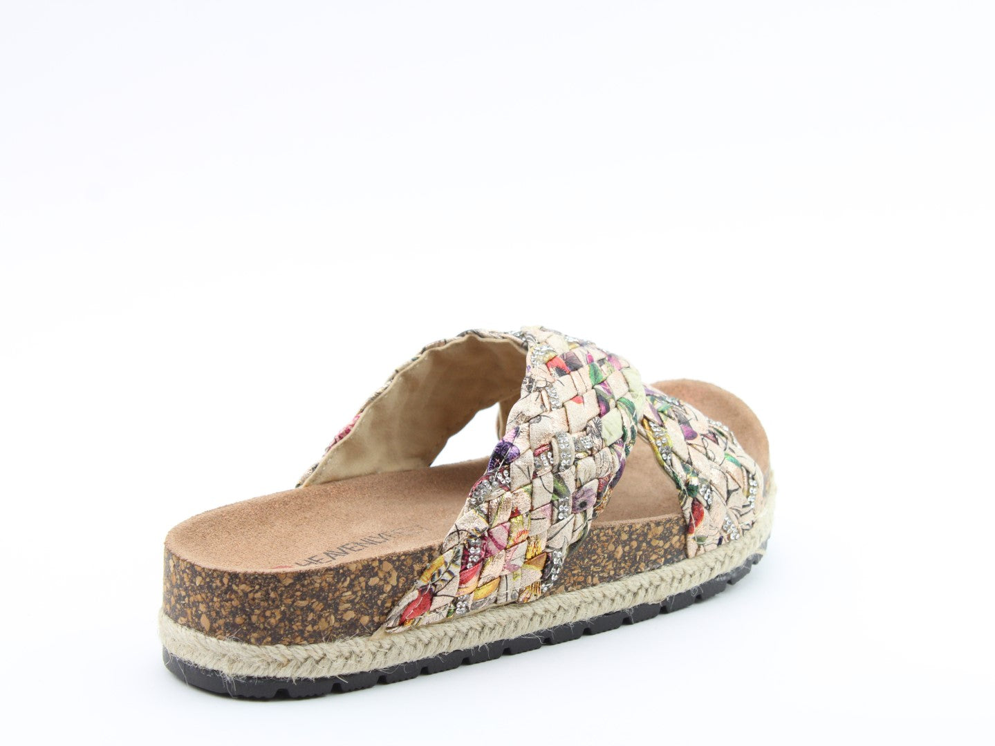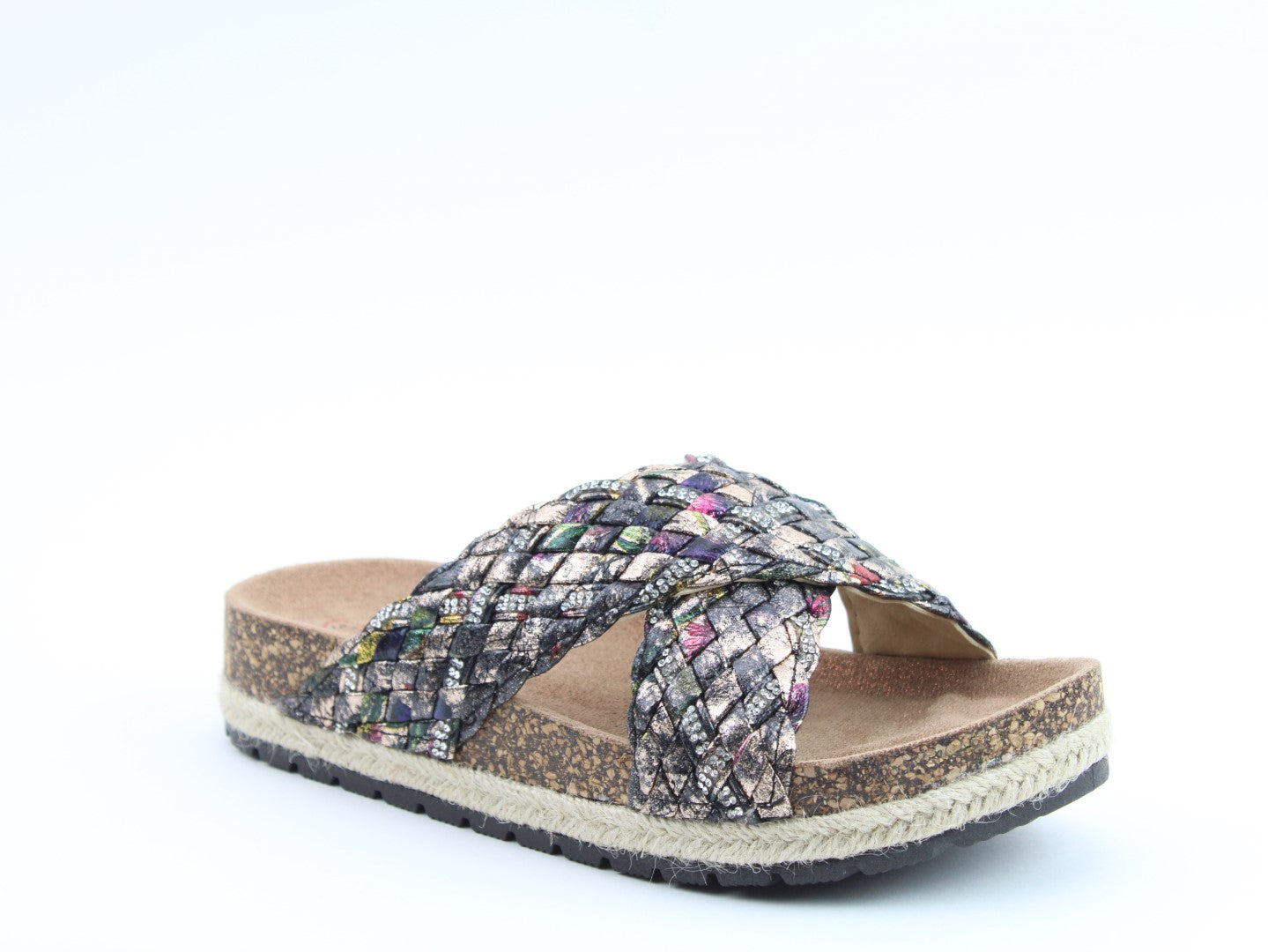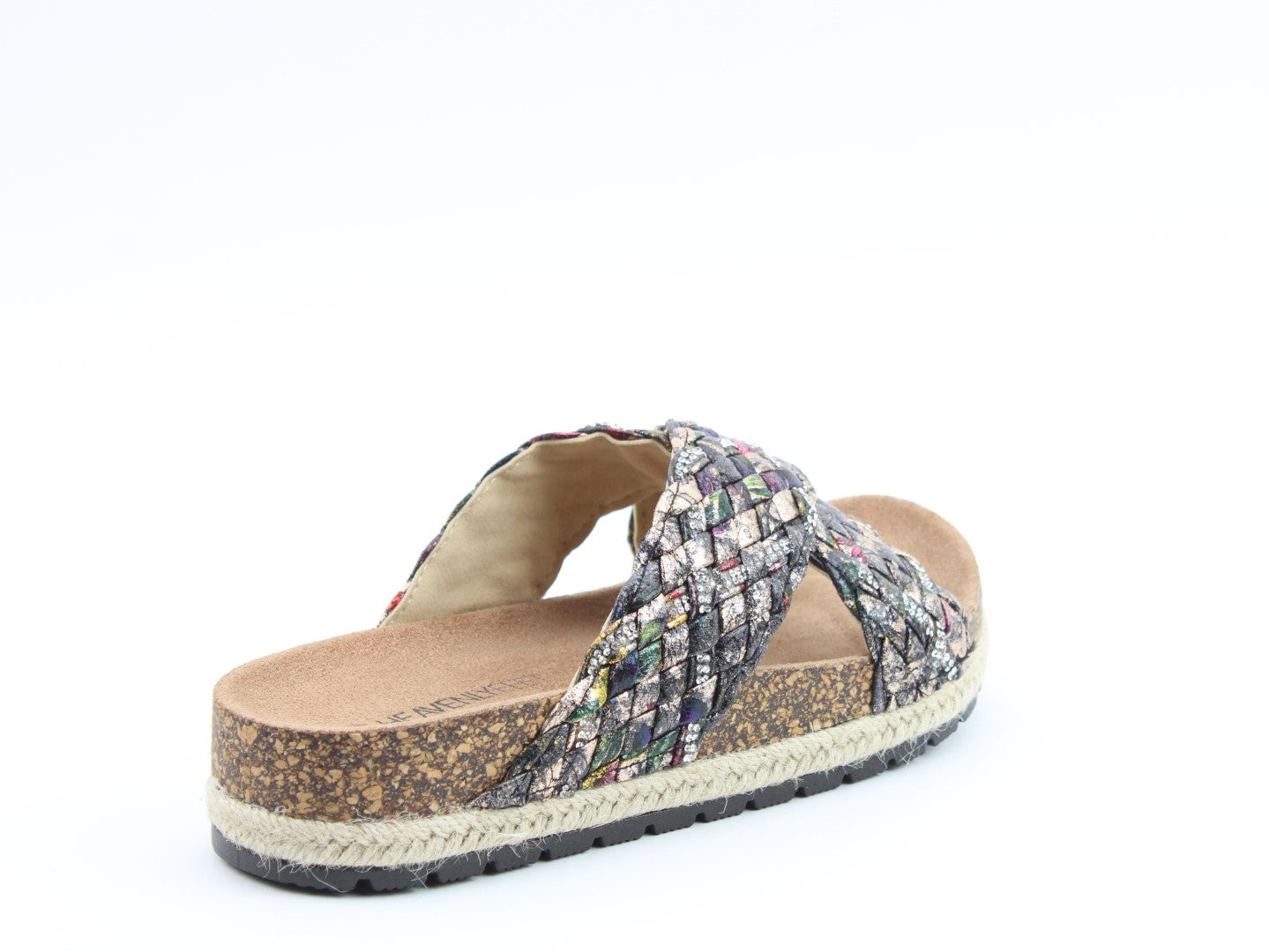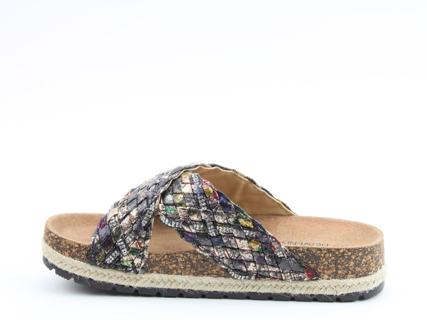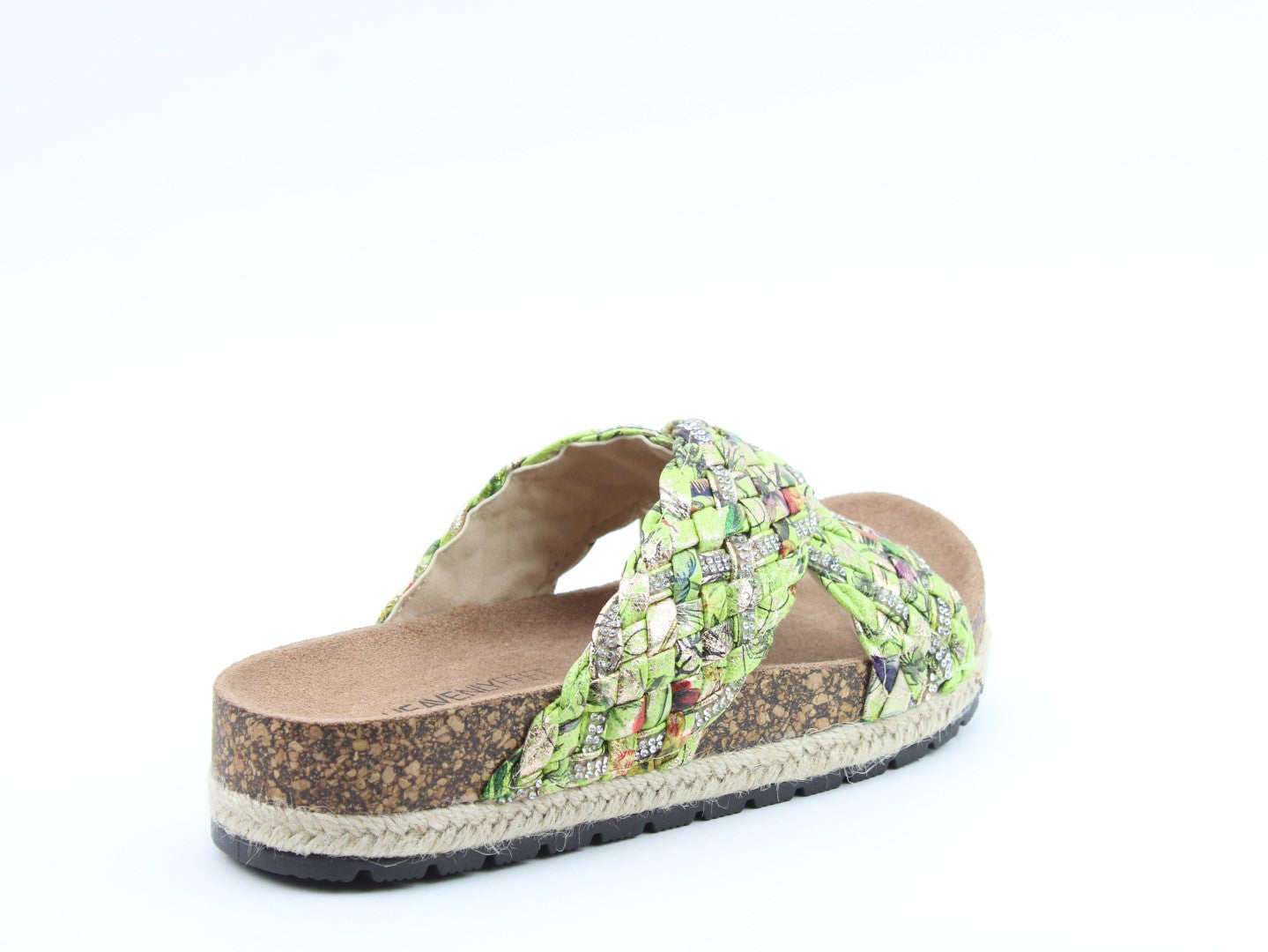 Step into comfort and style with the Erin bio-sandal. The soft patterned upper offer a little glitz and glamour via the inter-woven diamante jewels, whilst the cork-inspired outsole with jute surround provides a blend of casual elegance and everyday wear-ability. Ideal for warm-weather outings, Erin delivers breathable comfort and a soft contoured foot-bed for all day support.