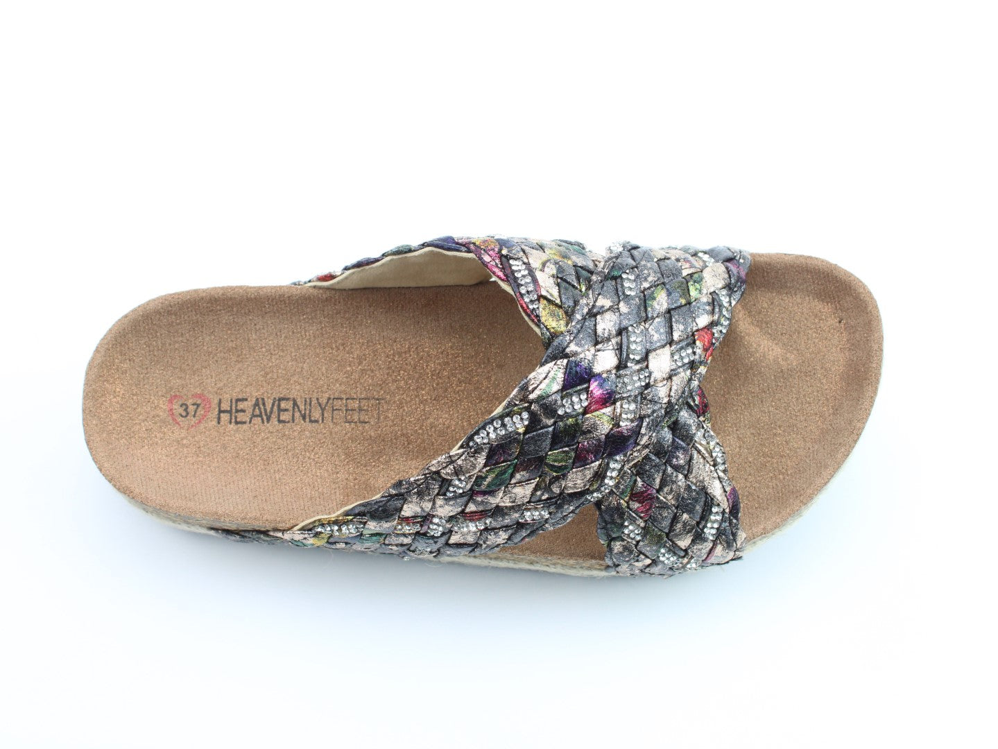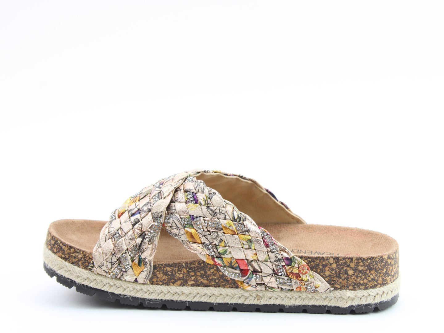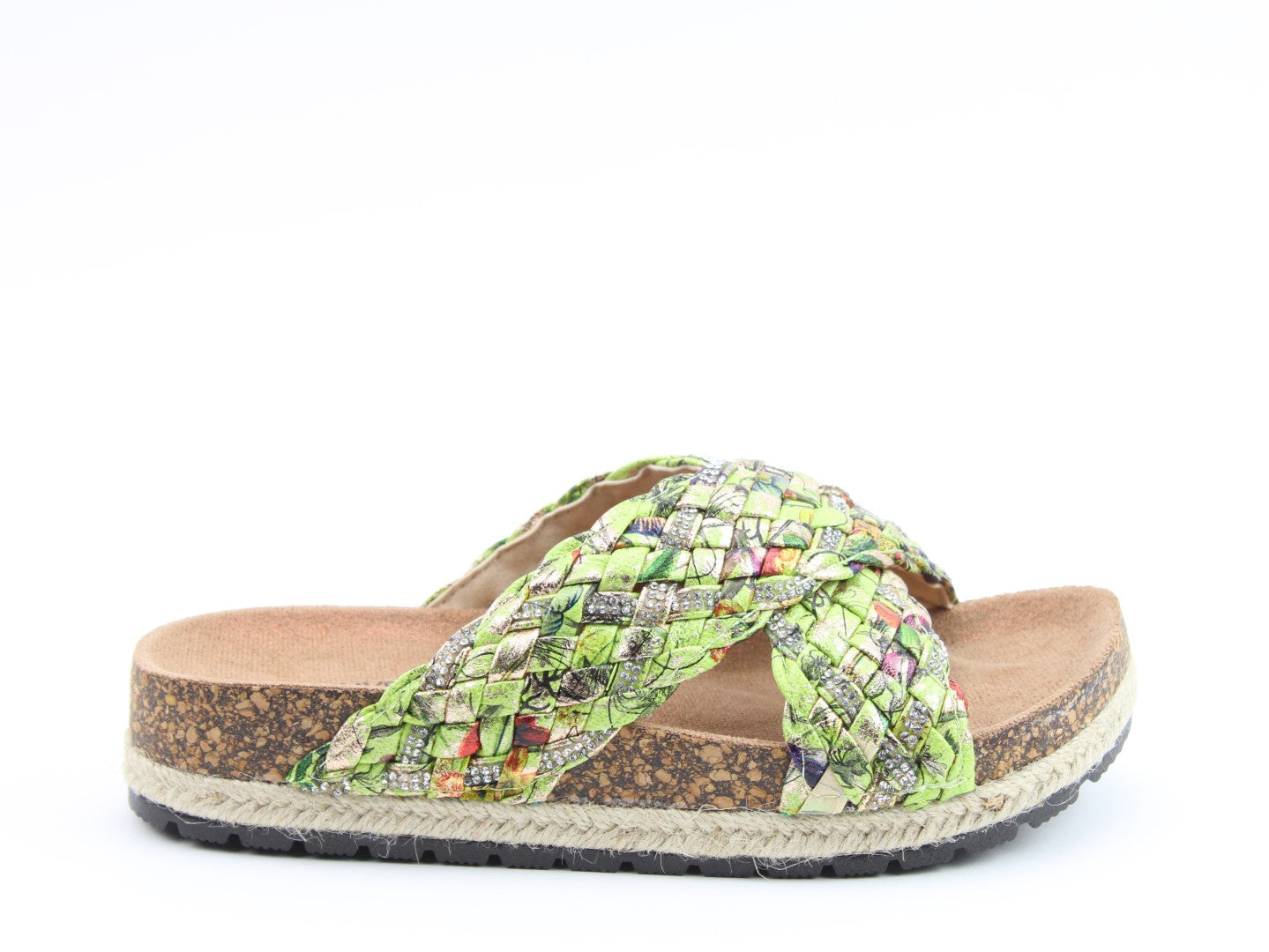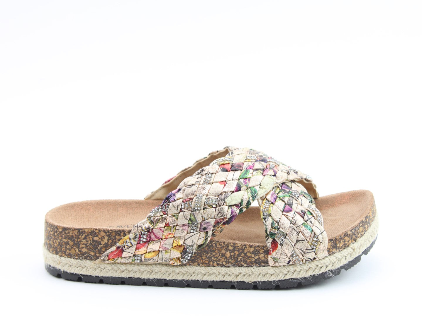 Step into comfort and style with the Erin bio-sandal. The soft patterned upper offer a little glitz and glamour via the inter-woven diamante jewels, whilst the cork-inspired outsole with jute surround provides a blend of casual elegance and everyday wear-ability. Ideal for warm-weather outings, Erin delivers breathable comfort and a soft contoured foot-bed for all day support.