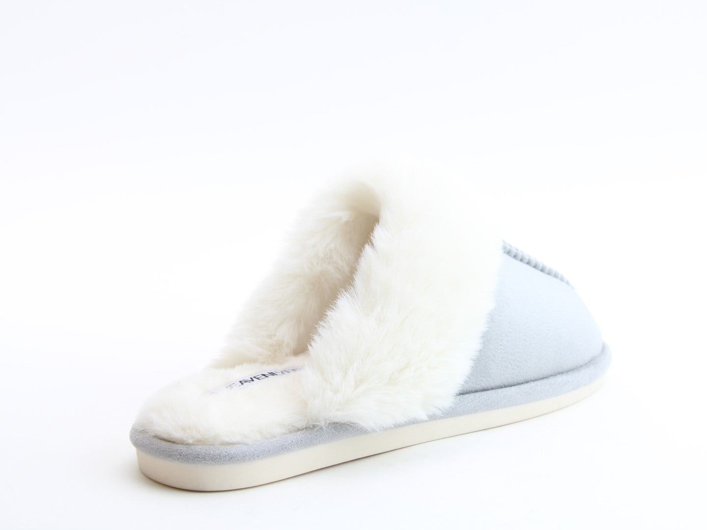 Back by popular demand! Our customers asked for this vegan friendly slipper to be re-introduced to the range so welcome back to our Fireside slipper. An ultra-lightweight stylish ladies slip-on mule slipper with a soft textile upper and faux fur cuff. A soft faux fur lining is complemented by a cushioned foot-bed. Perfect for around the home; on holiday or as a gift.