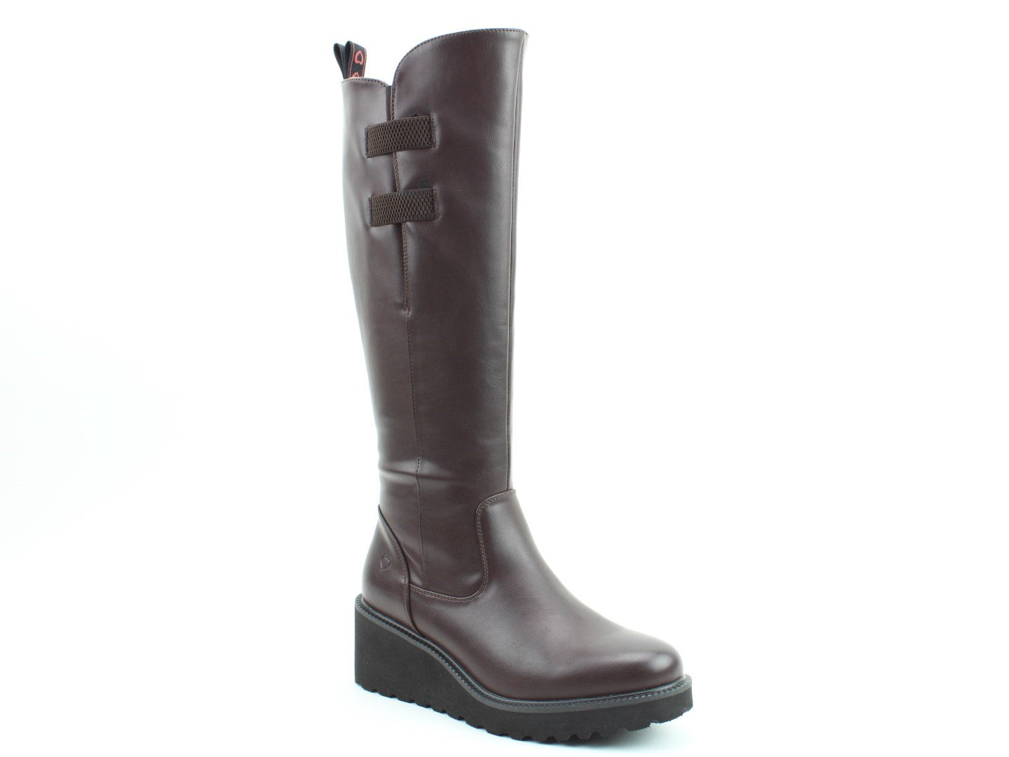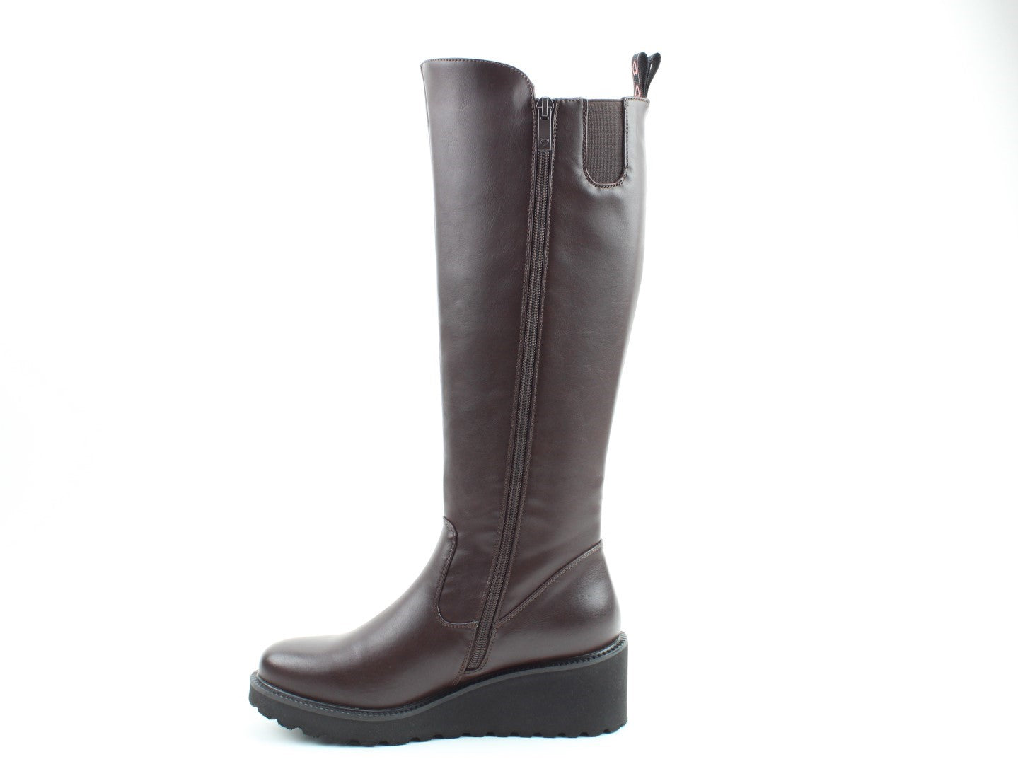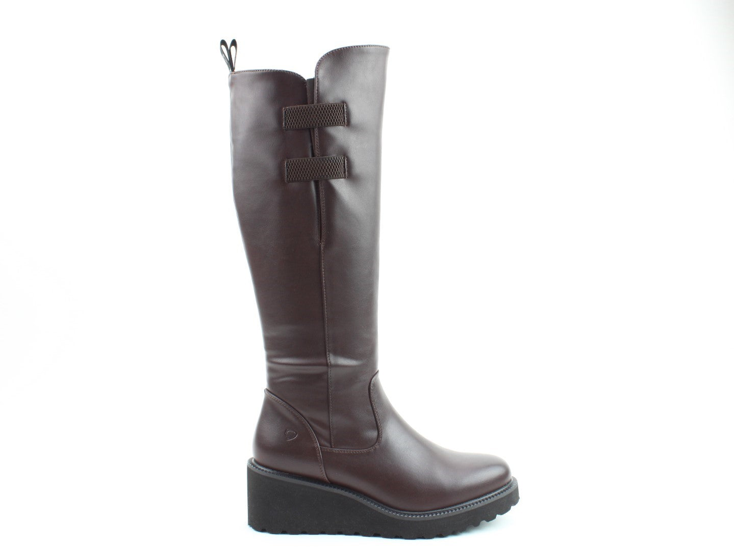 Crafted with a smooth synthetic upper and stretch detailing, Foxtail ensures a flexible and secure fit around the calf. The hidden inside zip allows for effortless on/off wear, while the lightweight wedge sole offers all-day comfort and support. Finished with classic twin strap detailing on the upper calf, this boot is perfect for pairing with skirts, dresses or leggings for a chic seasonal look.