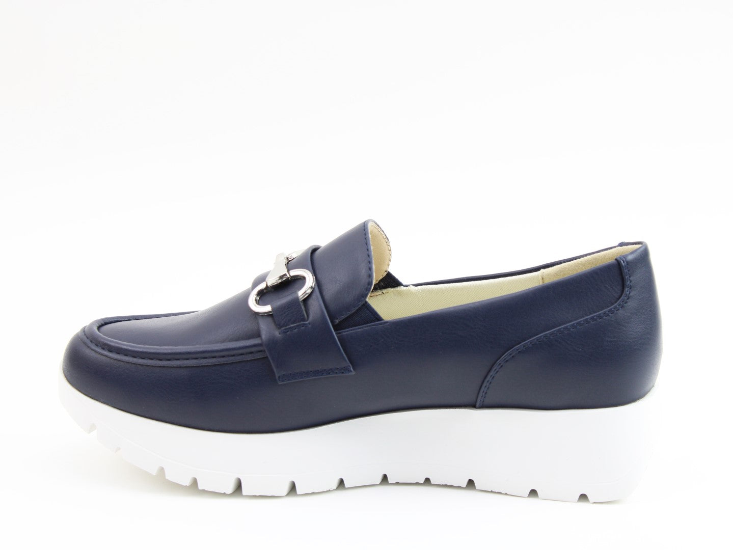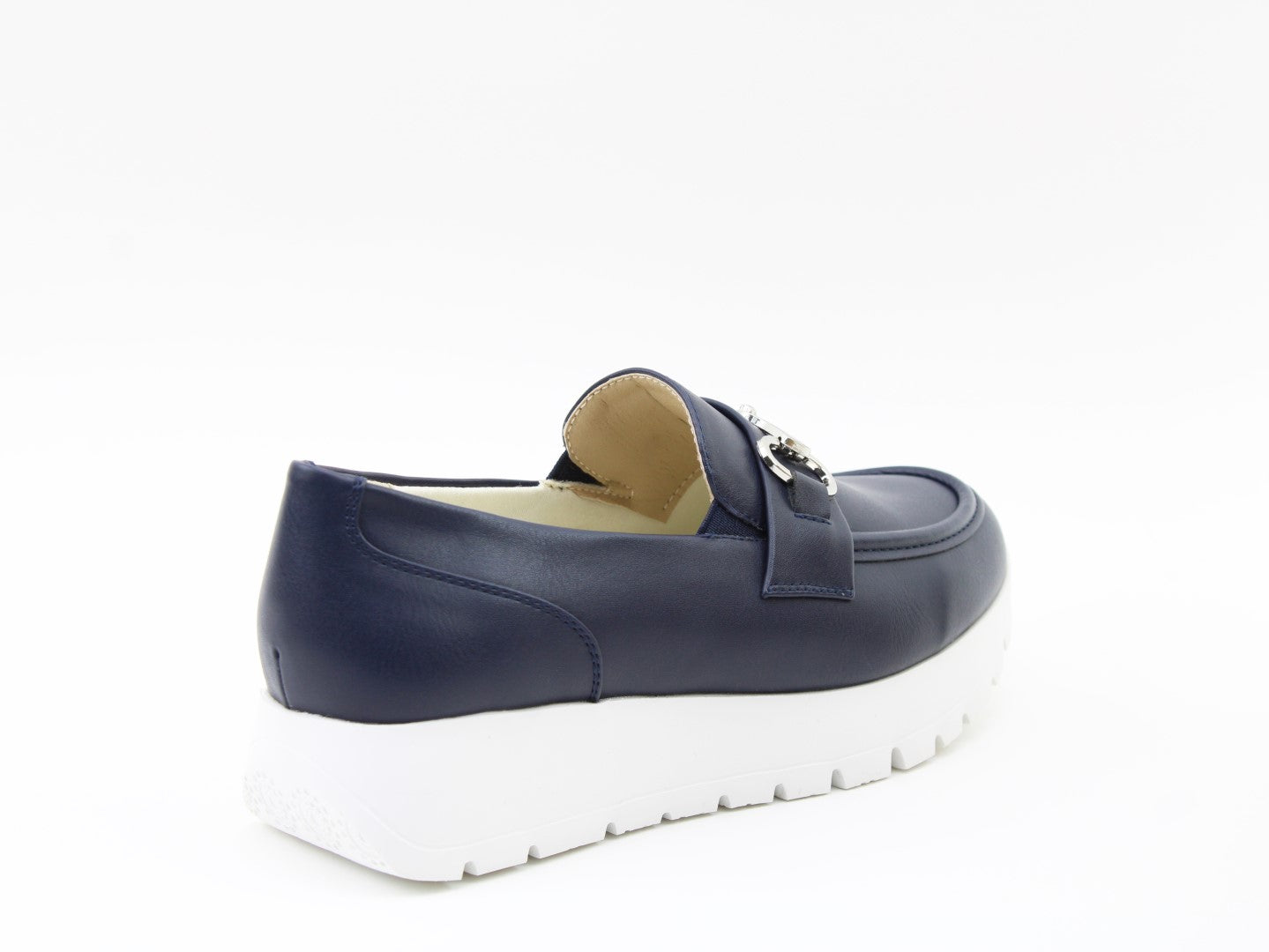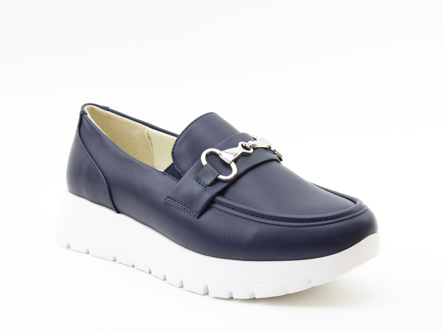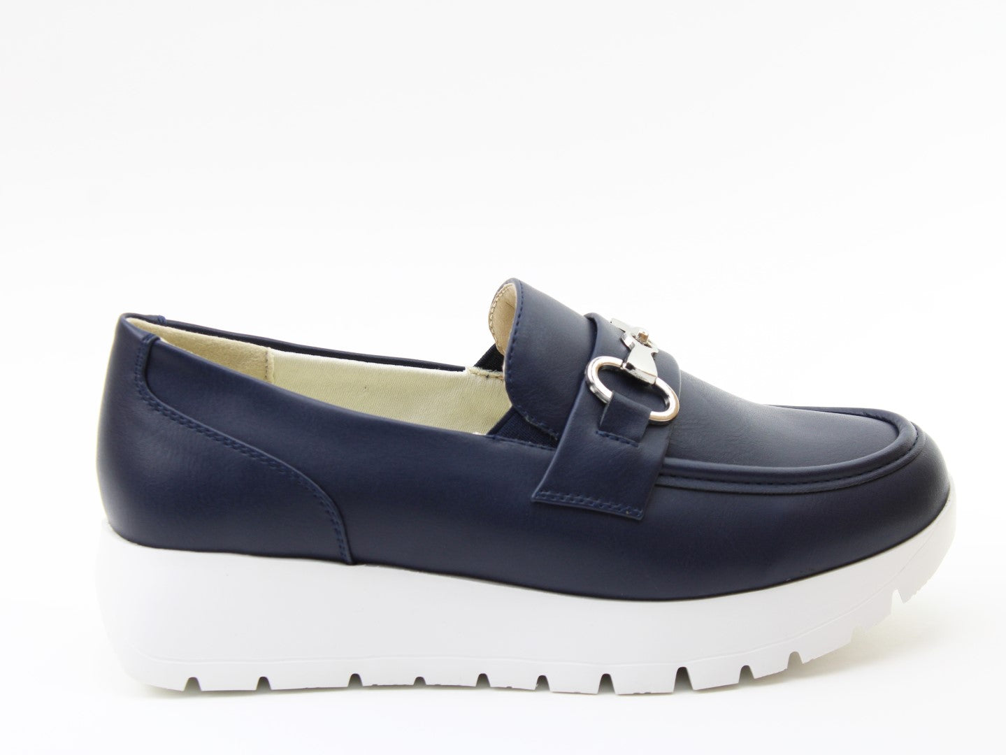 Smart meets comfort with the Foxy platform loafer from Heavenly Feet. Designed to elevate your everyday wardrobe, this vegan-friendly slip-on combines classic tailoring with a modern chunky sole. Crafted with elegant metal snaffle detailing, Foxy delivers timeless style with a contemporary twist. Elastic side inserts allow for easy slip-on wear, while the cushioned Memory Foam footbed ensures all-day support. The lightweight platform sole adds subtle height without compromising comfort, making it perfect for work, travel or weekend dressing.