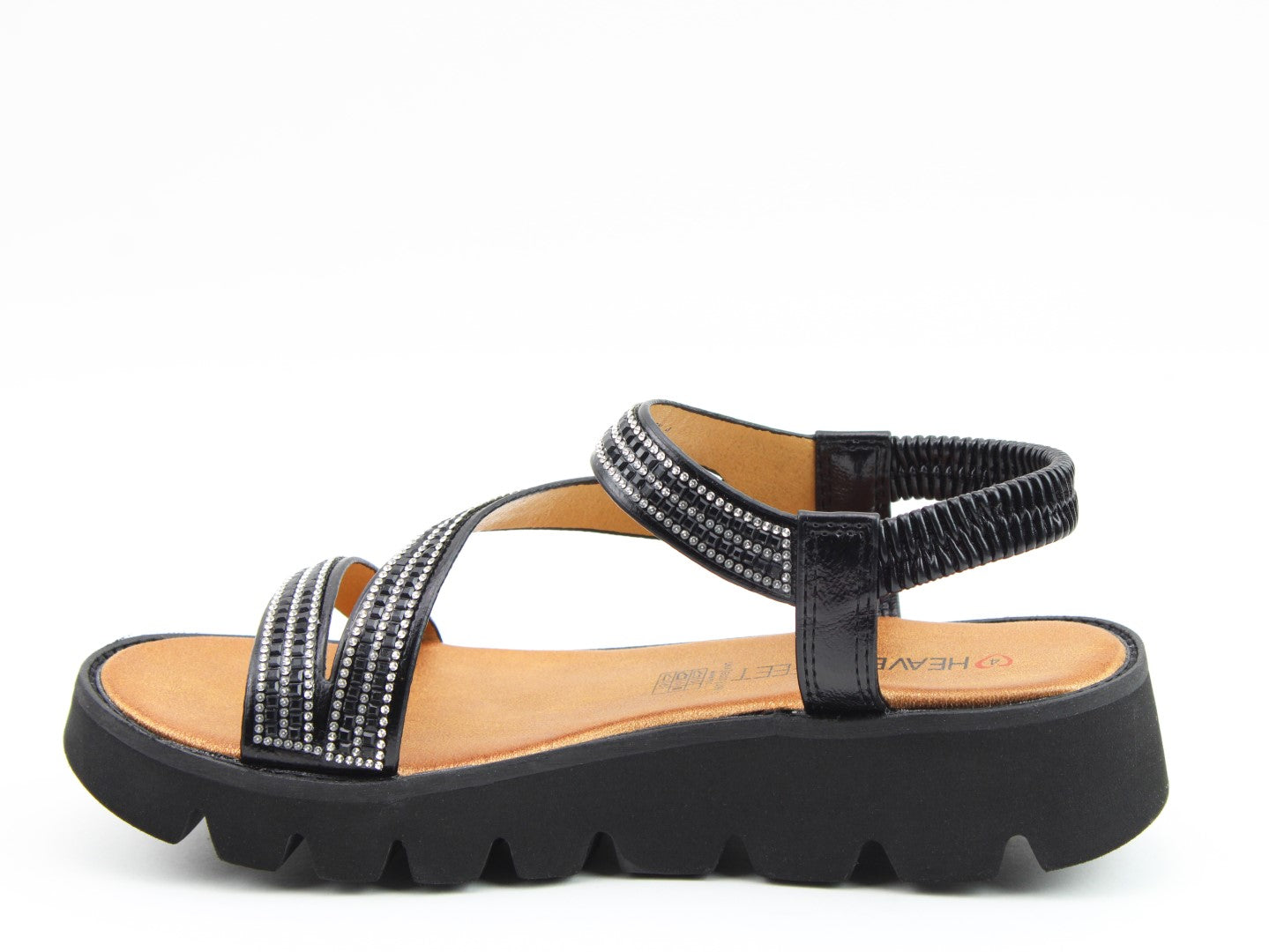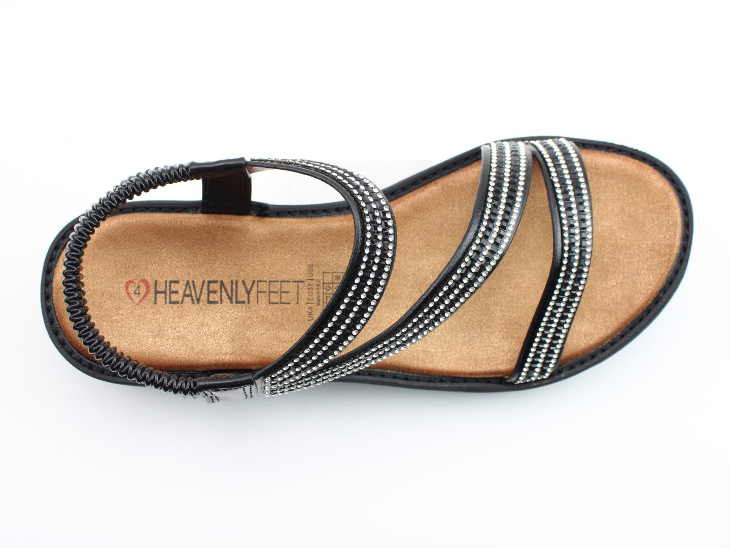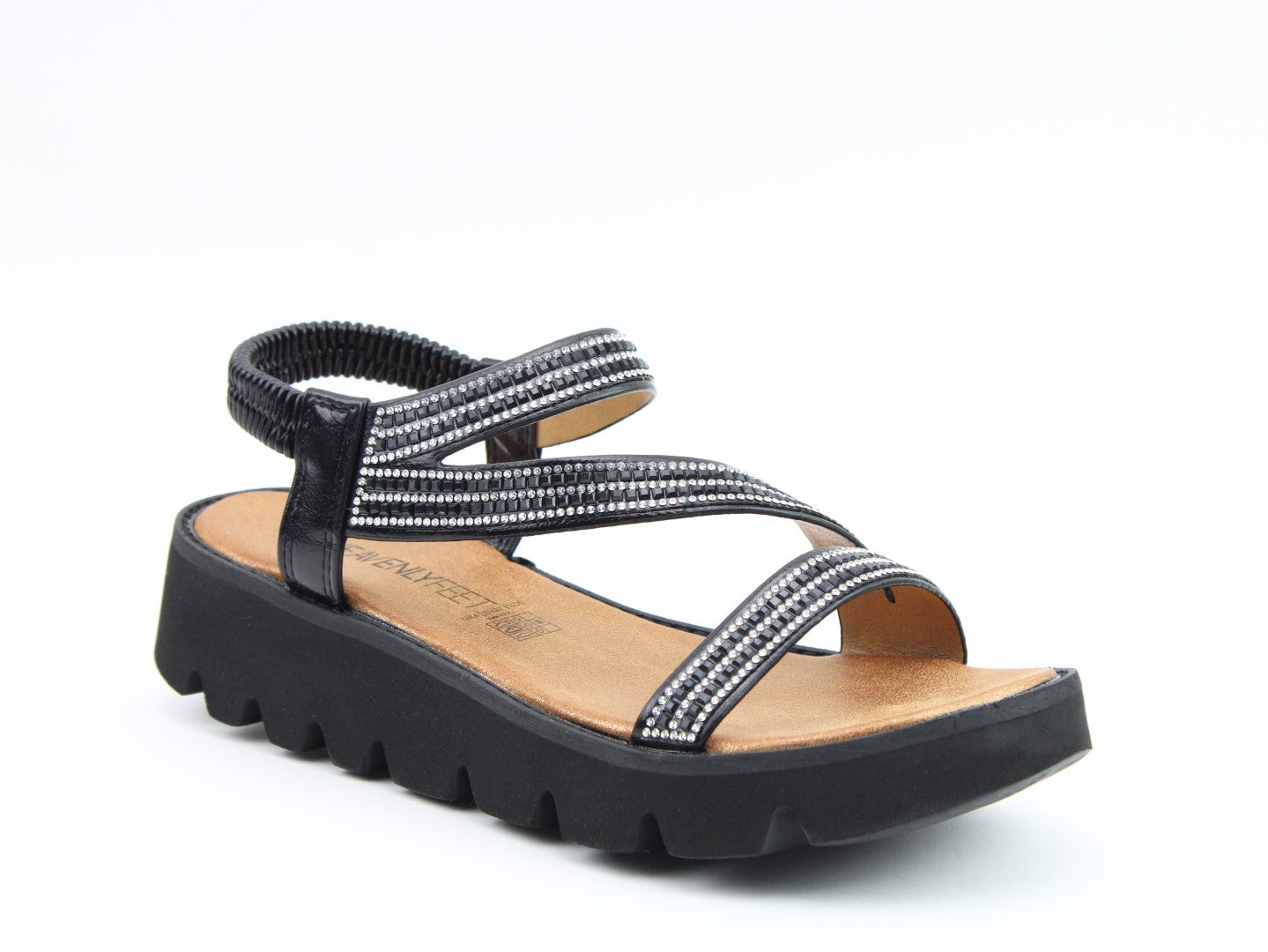Perfect for every day, evening and holiday wear, our fabulous Vegan friendly sandal style Fresco brings a little glitz and glamour to every outfit! Faux diamante trimmed upper straps and a fixed, elasticated stretch heel strap, offer great on-foot fitting and style. Soft cushioned foot bed affords comfort underfoot whilst the super lightweight construction and a chunky lightweight outsole mean this is perfect for popping in the suitcase when going away.