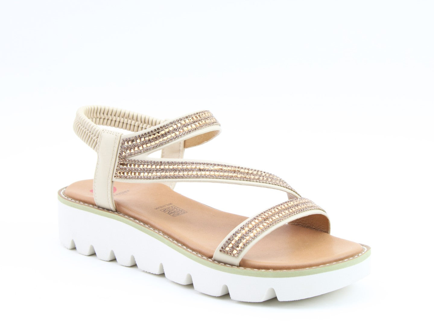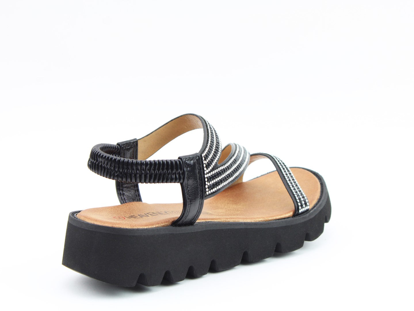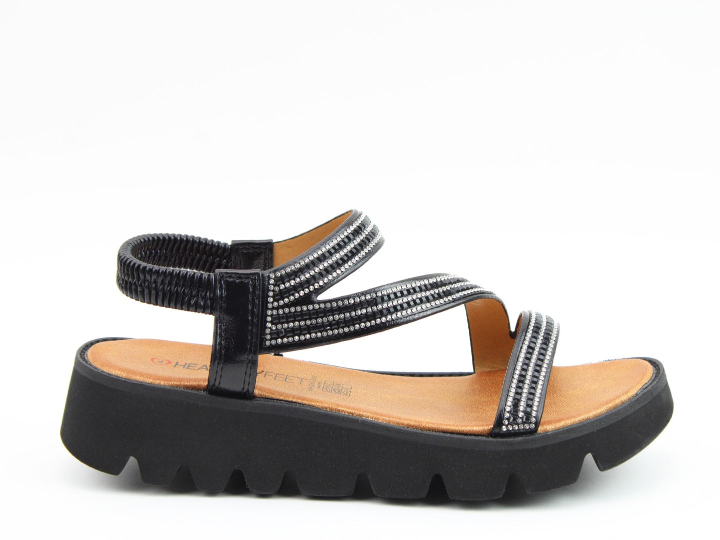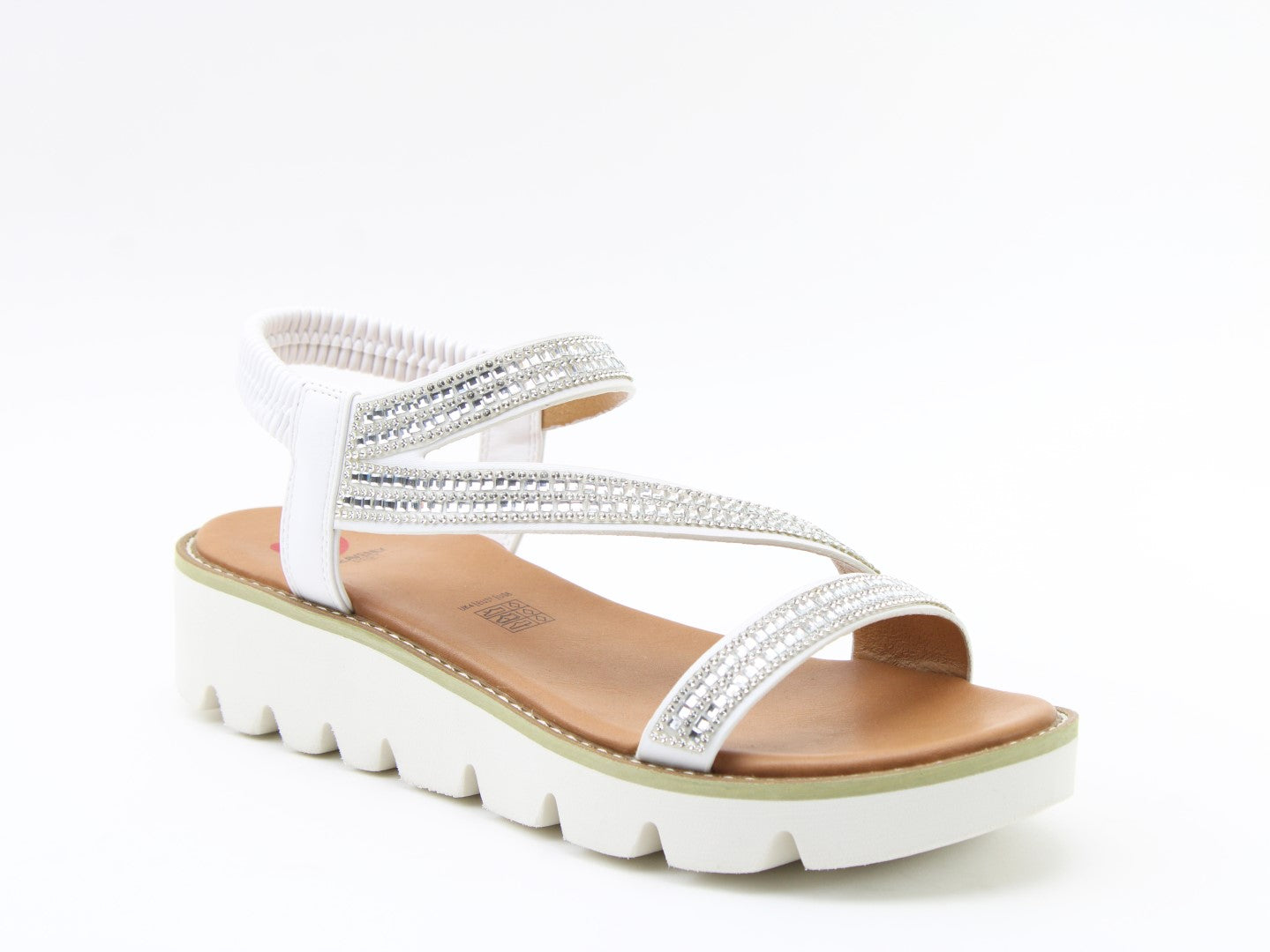 Perfect for every day, evening and holiday wear, our fabulous Vegan friendly sandal style Fresco brings a little glitz and glamour to every outfit! Faux diamante trimmed upper straps and a fixed, elasticated stretch heel strap, offer great on-foot fitting and style. Soft cushioned foot bed affords comfort underfoot whilst the super lightweight construction and a chunky lightweight outsole mean this is perfect for popping in the suitcase when going away.