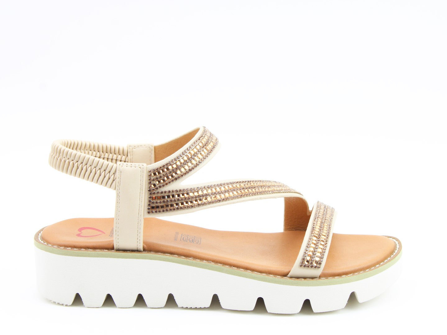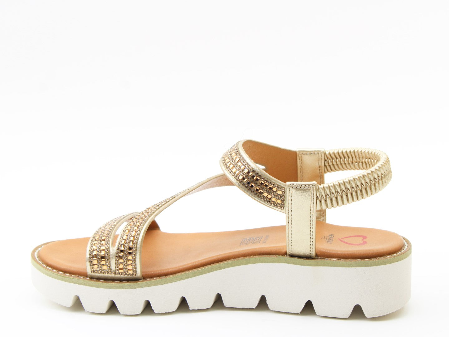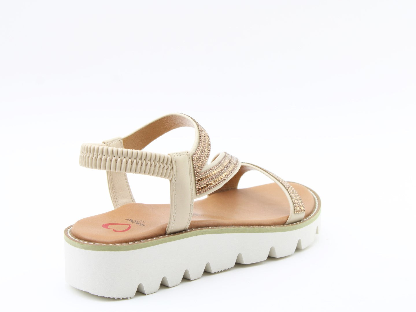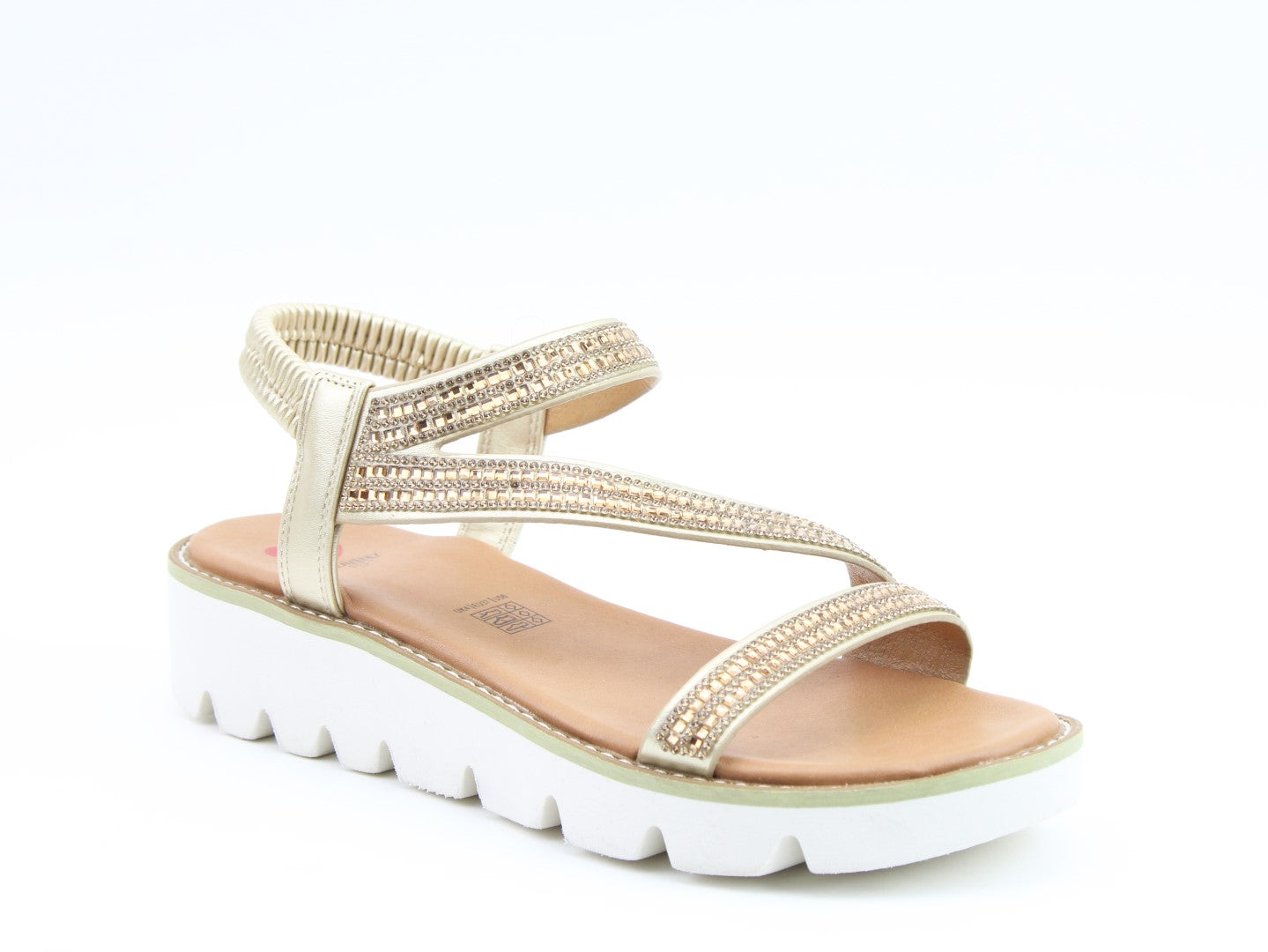 Perfect for every day, evening and holiday wear, our fabulous Vegan friendly sandal style Fresco brings a little glitz and glamour to every outfit! Faux diamante trimmed upper straps and a fixed, elasticated stretch heel strap, offer great on-foot fitting and style. Soft cushioned foot bed affords comfort underfoot whilst the super lightweight construction and a chunky lightweight outsole mean this is perfect for popping in the suitcase when going away.