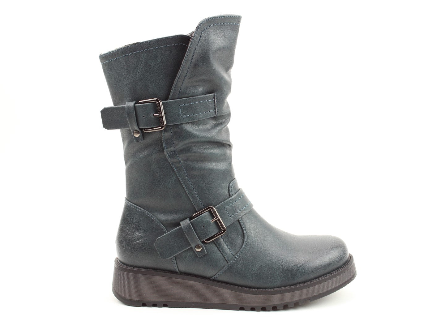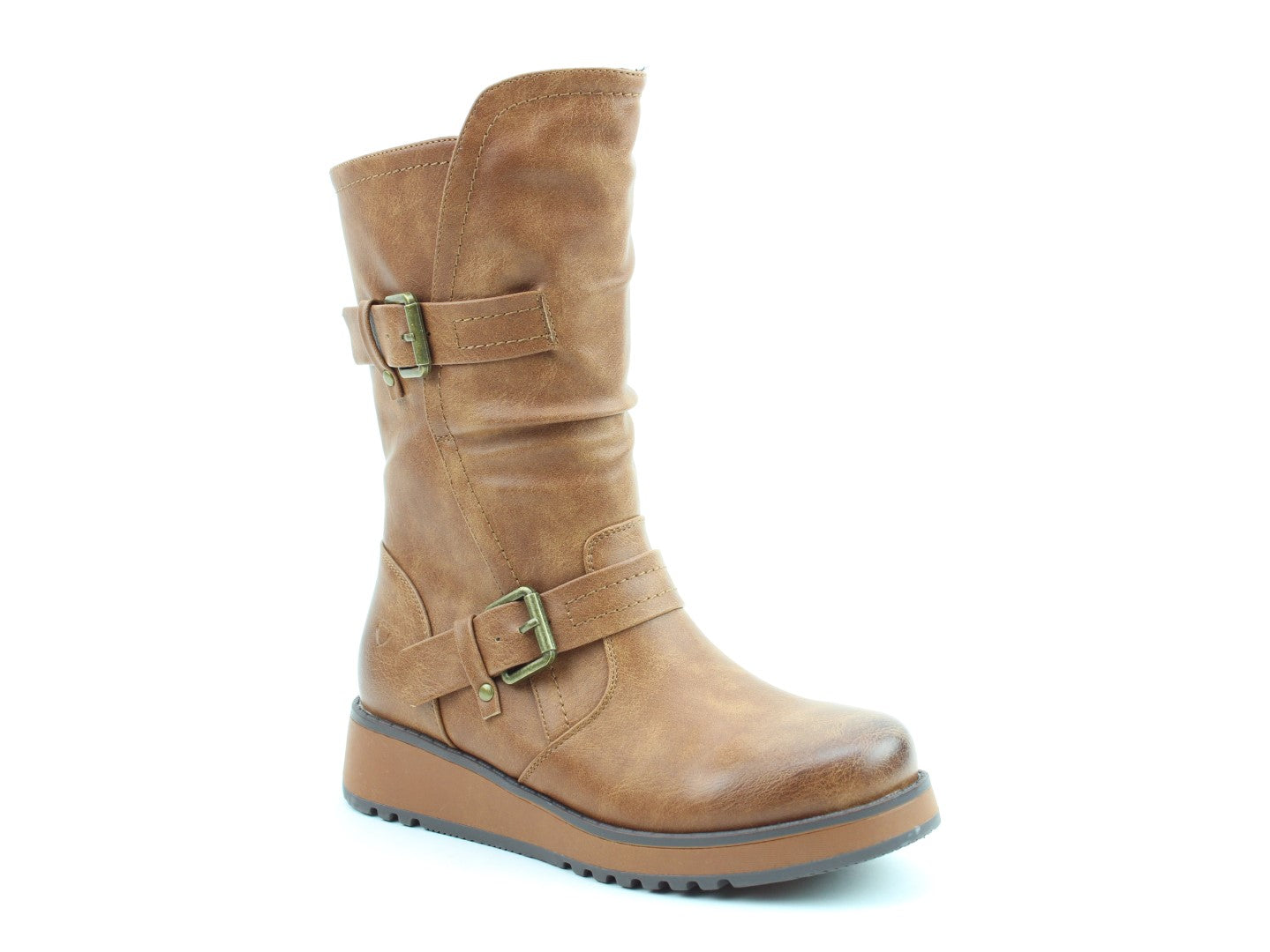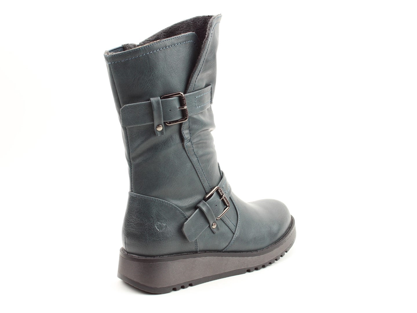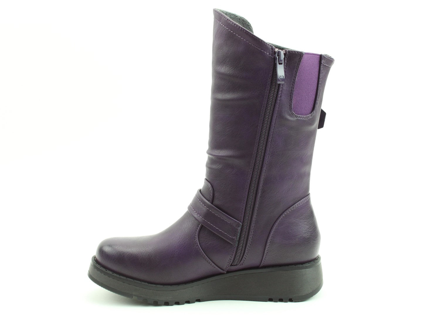 Ladies relaxed casual mid-calf Vegan friendly boot. Features a soft man-made upper with twin adjustable buckle fastening straps and colour matched outsole.  Soft textile lining and our new textile covered removable Memory Foam foot bed for supreme underfoot comfort.  A full length side zip and elastic top panel allow for ease of fitting. Hard-wearing low wedge outsole with our heart design.