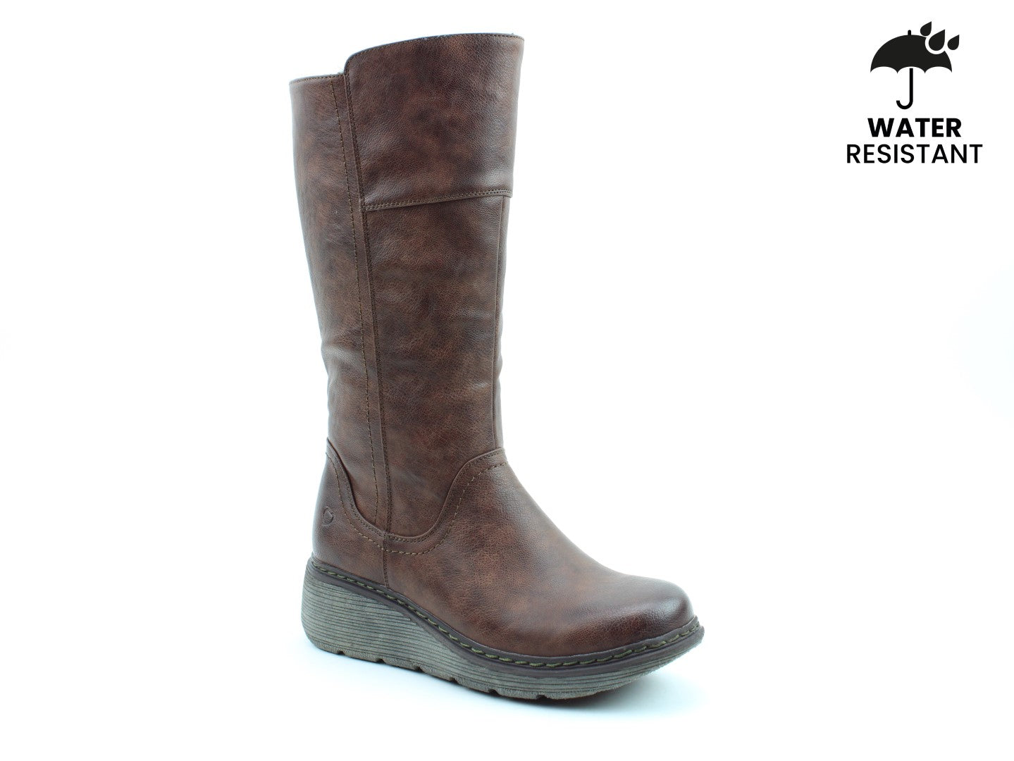 An exciting new Water Resistant style for Heavenly Feet this autumn. Featuring our removable Memory Foam insoles, this Vegan Friendly boot is perfect for those light autumn showers as it features a water resistant upper. Soft wipe clean design with small elastic stretch panel for extra calf fitting, full length side zip, soft textile lining and Memory Foam insoles for supreme under foot comfort. A lightweight everyday boot with a hard-wearing outsole.