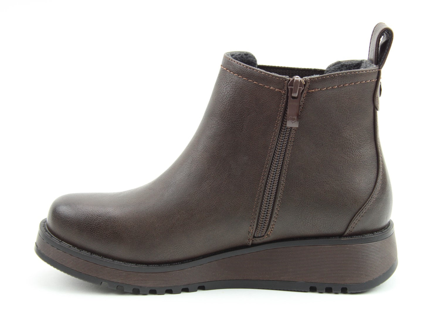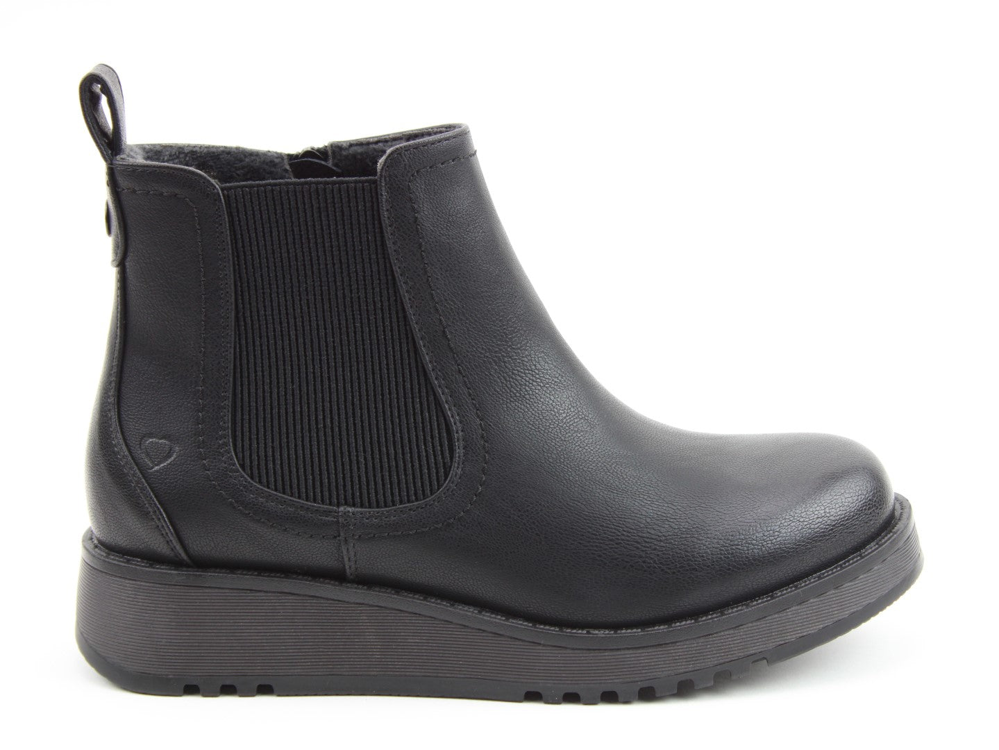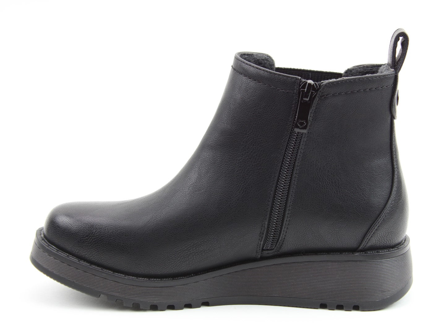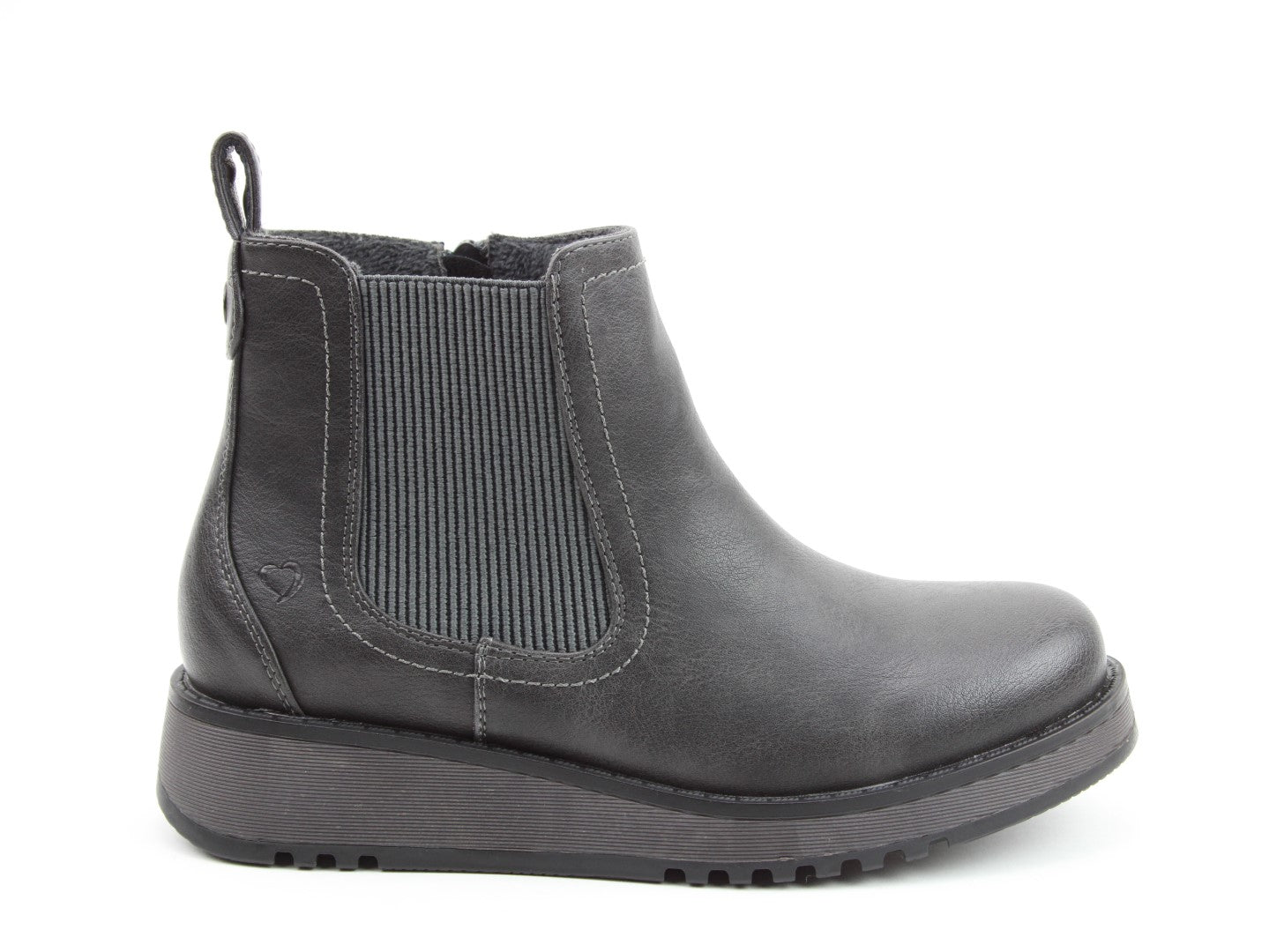 Our best-selling ladies casual everyday ankle boot now features a stylish new outsole design.  Soft Vegan Friendly man-made upper, comfort lining and removable foot-bed with textile covered Memory Foam for supreme underfoot comfort. Full length side zip. Also features a stretch elastic panel for extra comfort and fitting plus a finger-pull tab at the heel.