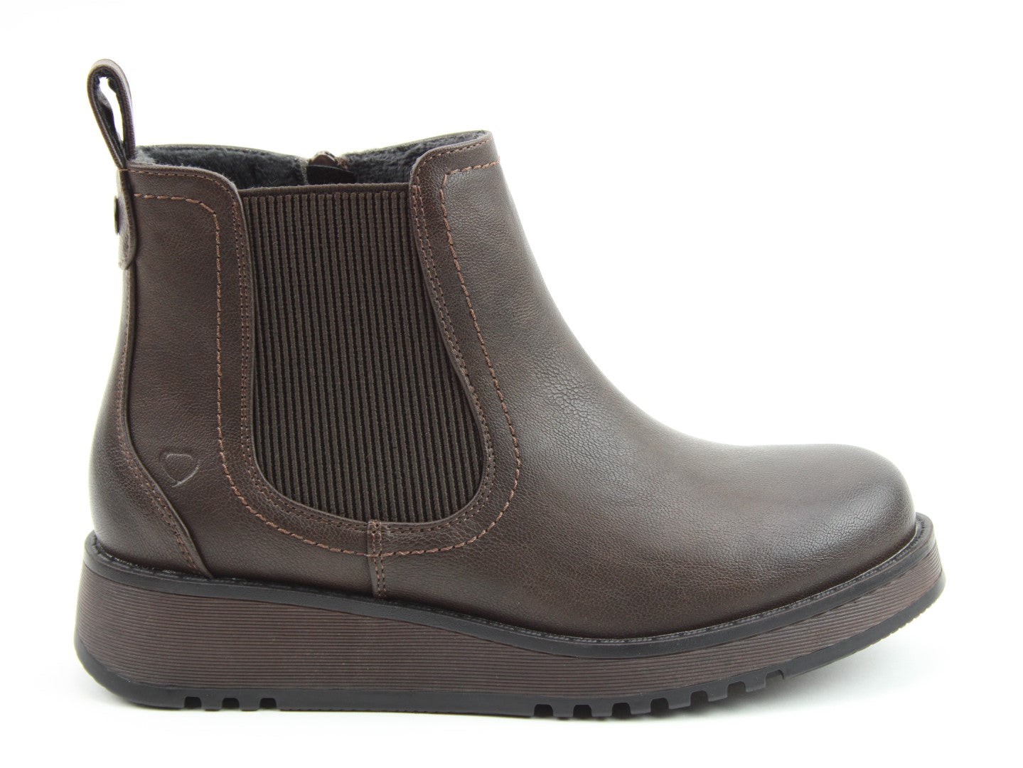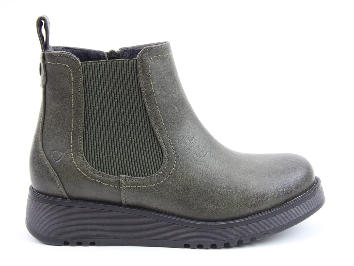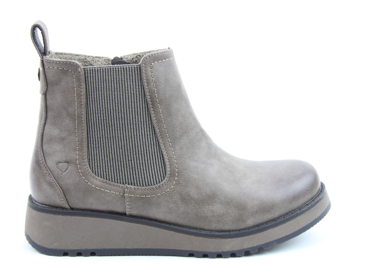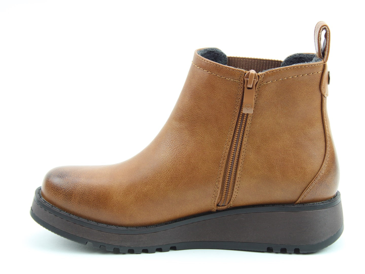 Our best-selling ladies casual everyday ankle boot now features a stylish new outsole design.  Soft Vegan Friendly man-made upper, comfort lining and removable foot-bed with textile covered Memory Foam for supreme underfoot comfort. Full length side zip. Also features a stretch elastic panel for extra comfort and fitting plus a finger-pull tab at the heel.