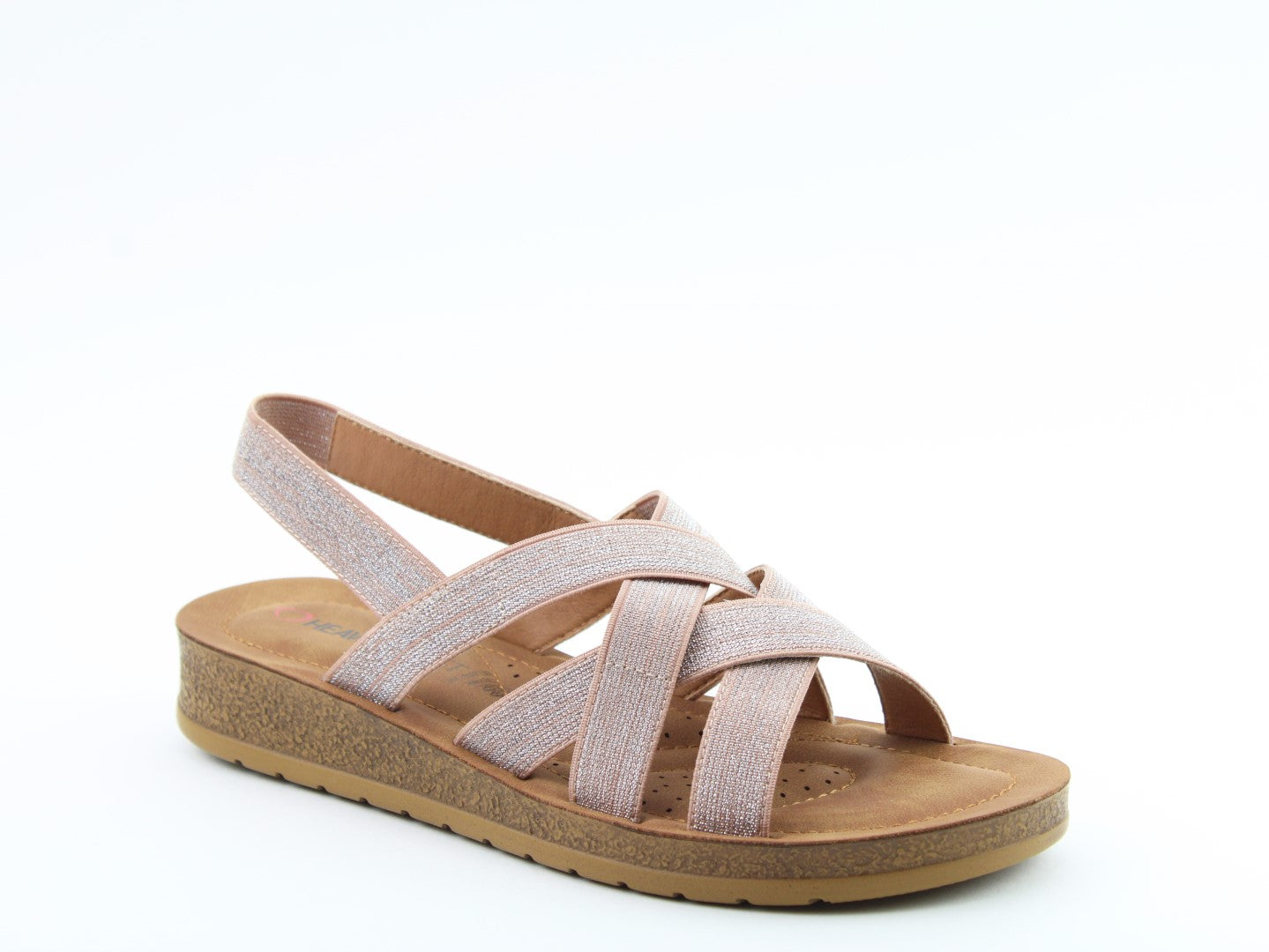 Add a little glittery glamour to your summer wardrobe with our fabulous new Shauna sandals. Designed for all-day wear, this vegan friendly sandal features a stretch elastic back strap for a secure and comfortable fitting. With a soft perforated and padded foot-bed and super lightweight outsole you'll be comfortable all day, every day. Perfect for warm-weather outings, it pairs effortlessly with summer dresses, skirts and casual outfits alike.