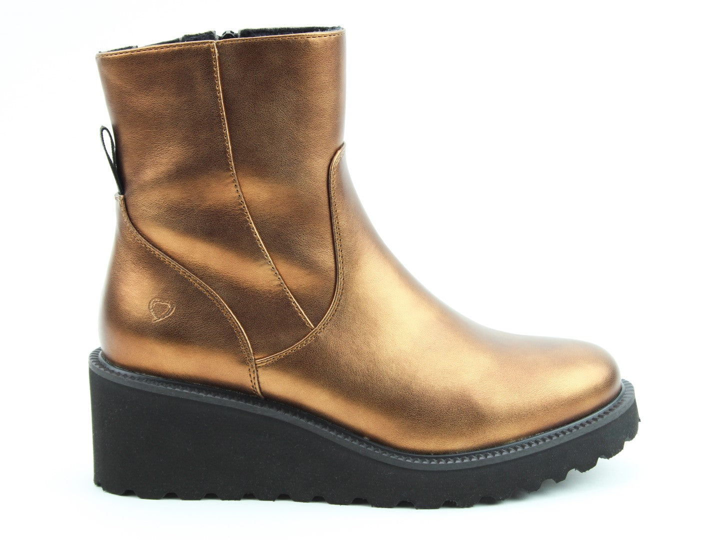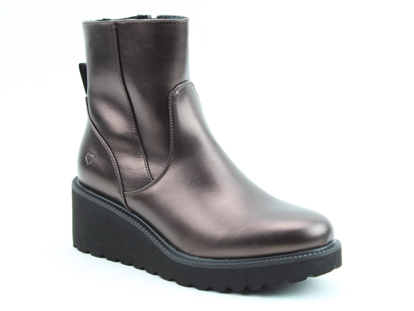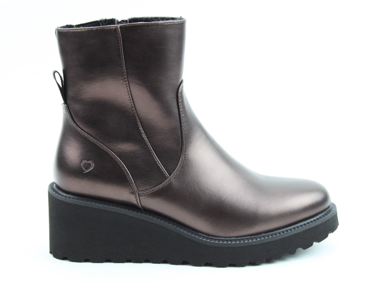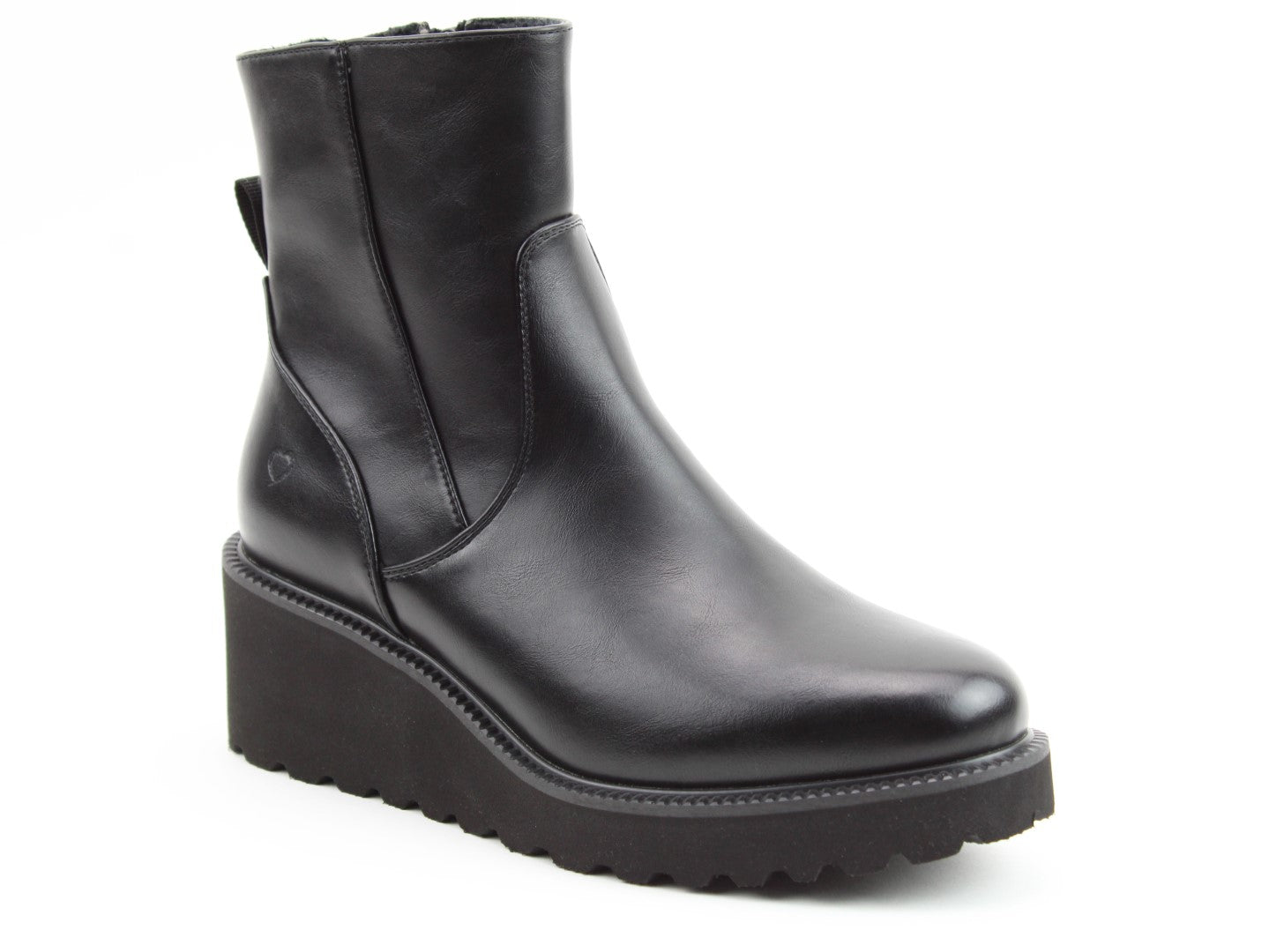 Step up your everyday look with Silvia, the vegan-friendly wedge ankle boot that balances elegance and comfort. Crafted with a sleek, smooth upper, Silvia features a side zip for easy on-off and a stylish wedge sole that adds flattering lift without sacrificing stability. Finished with our signature removable memory-foam insole, this boot is made for long days and stylish strides.