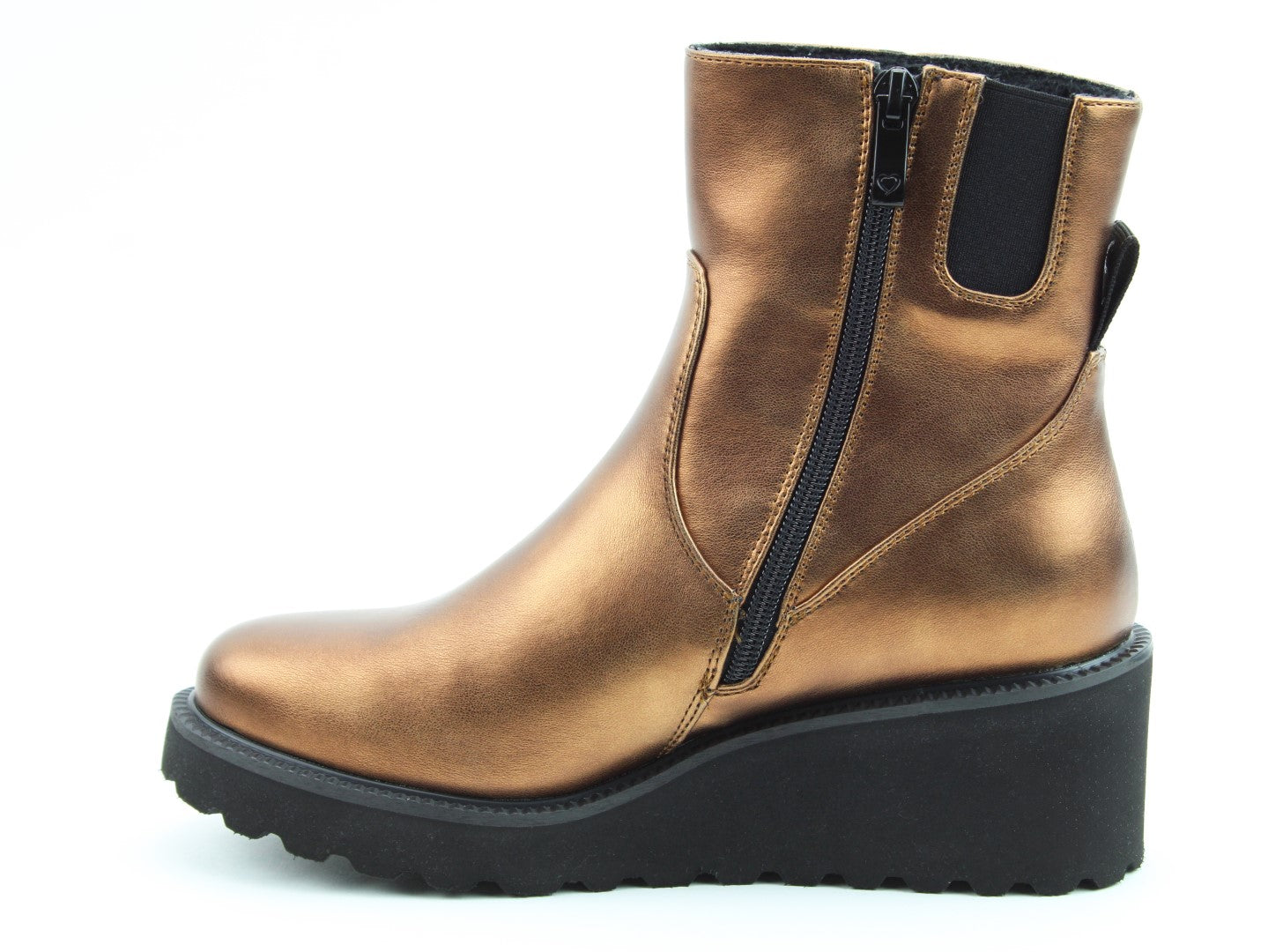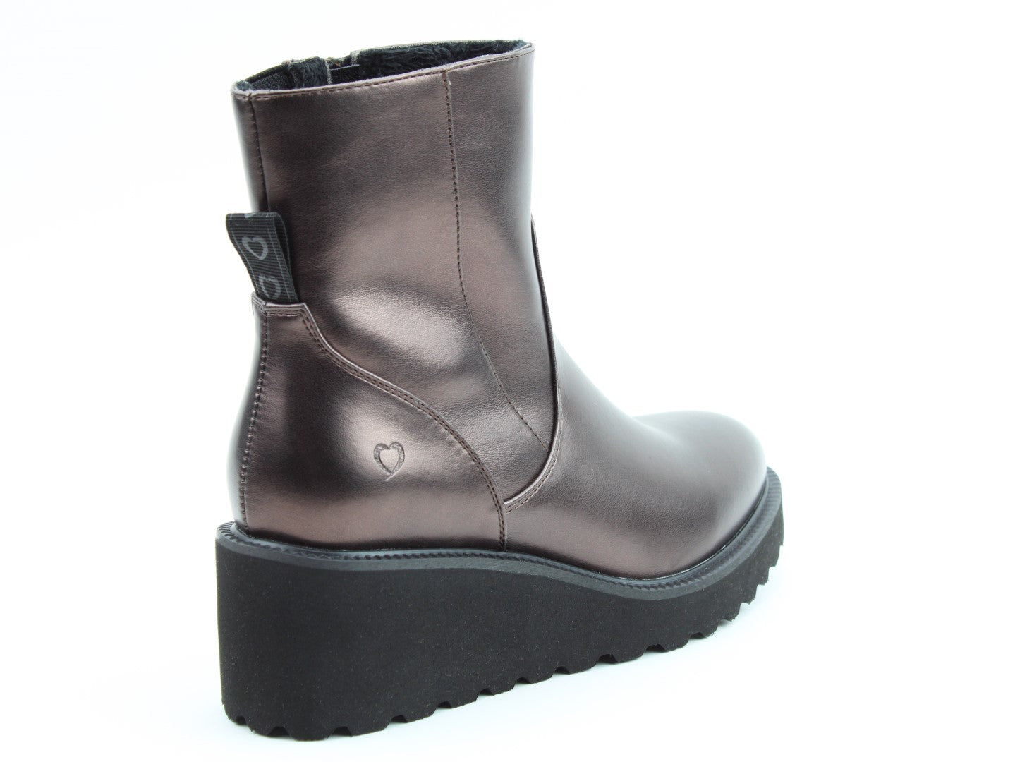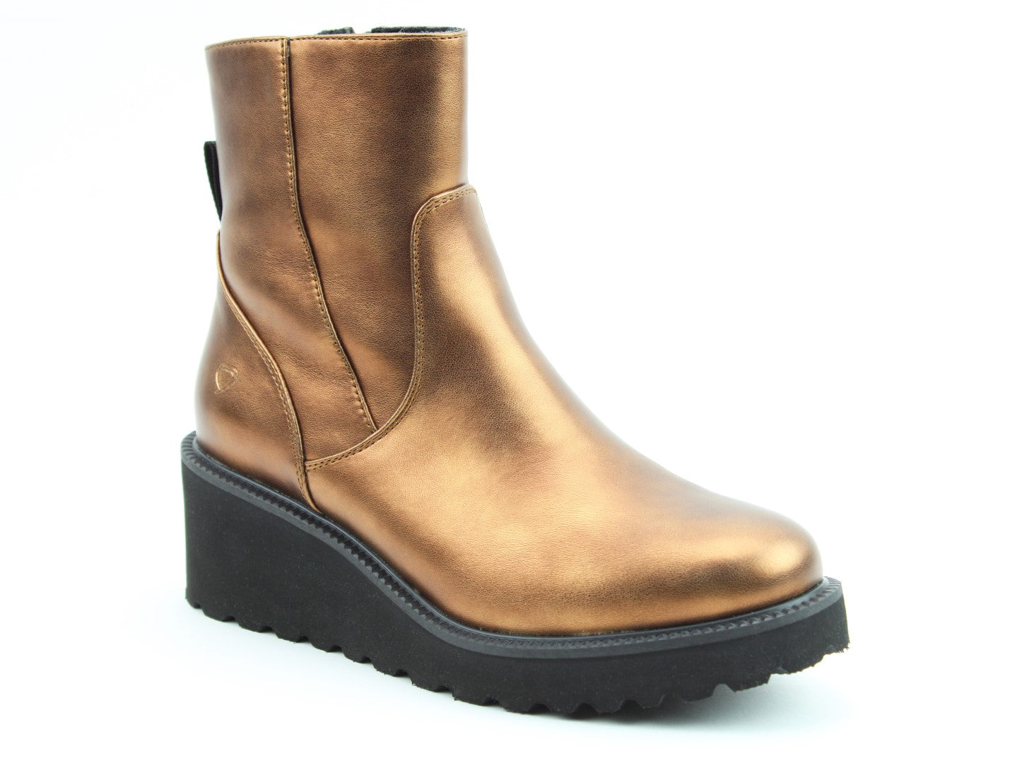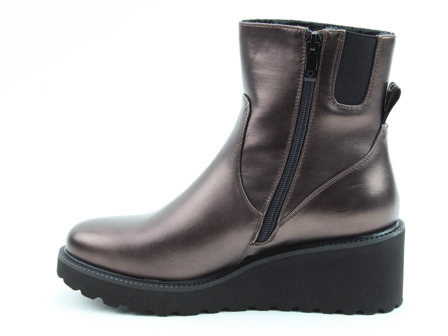 Step up your everyday look with Silvia, the vegan-friendly wedge ankle boot that balances elegance and comfort. Crafted with a sleek, smooth upper, Silvia features a side zip for easy on-off and a stylish wedge sole that adds flattering lift without sacrificing stability. Finished with our signature removable memory-foam insole, this boot is made for long days and stylish strides.