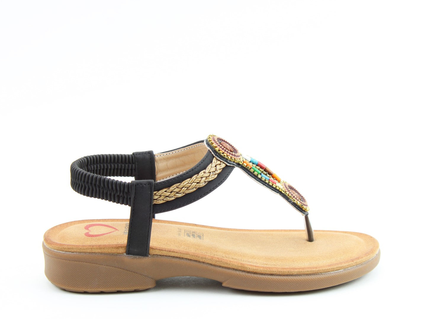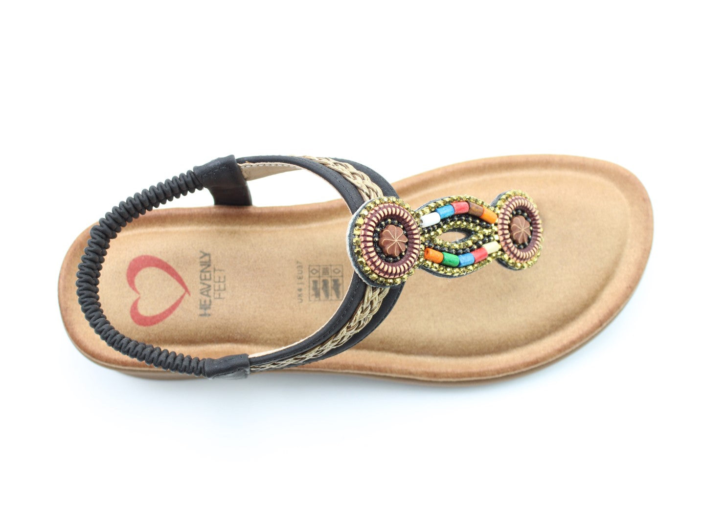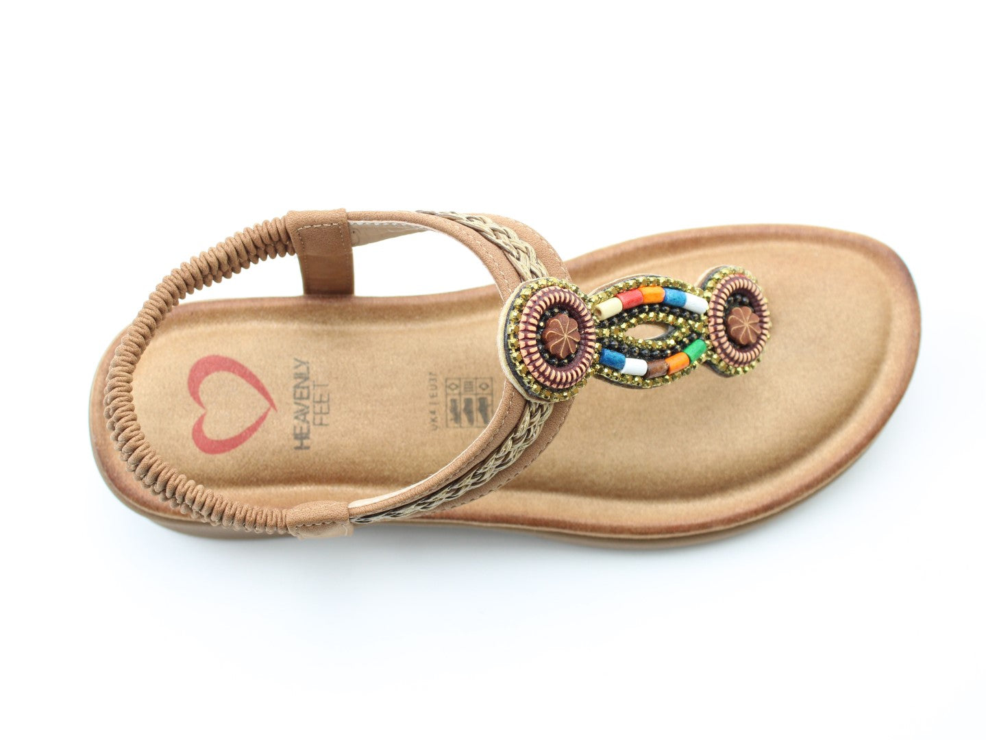 Step into summer with the vibrant Zing sandal from Heavenly Feet. This vegan-friendly T-bar design features colourful bead embellishments that instantly lift any outfit. The elasticated back strap makes slipping them on effortless, while the cushioned footbed keeps you comfortable all day long. A fun and practical choice for sunny days, seaside escapes, or casual weekends.