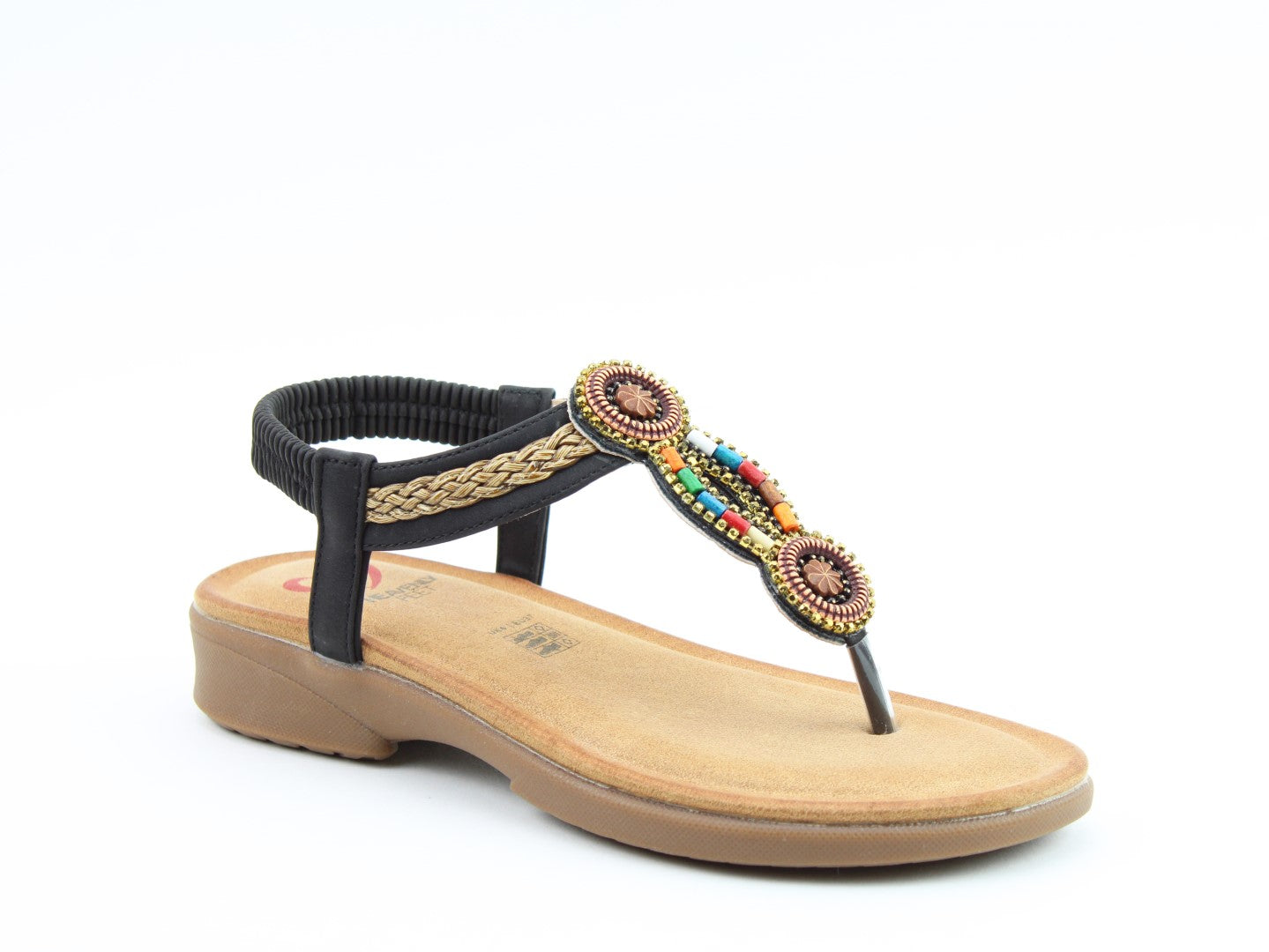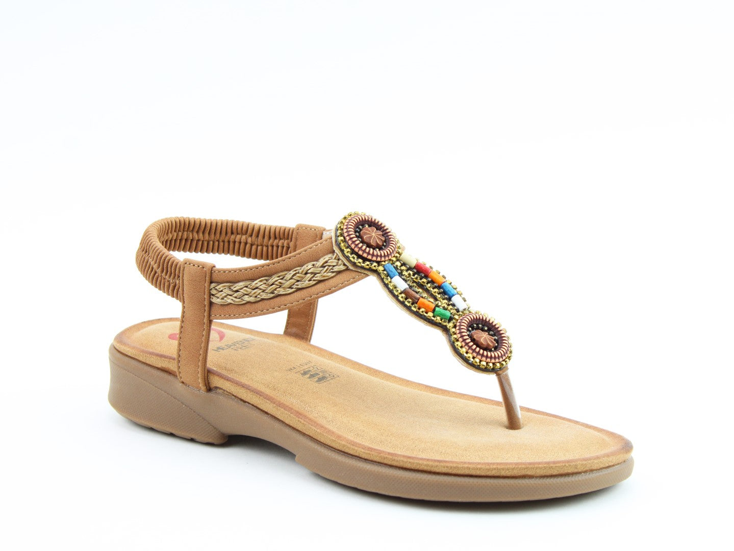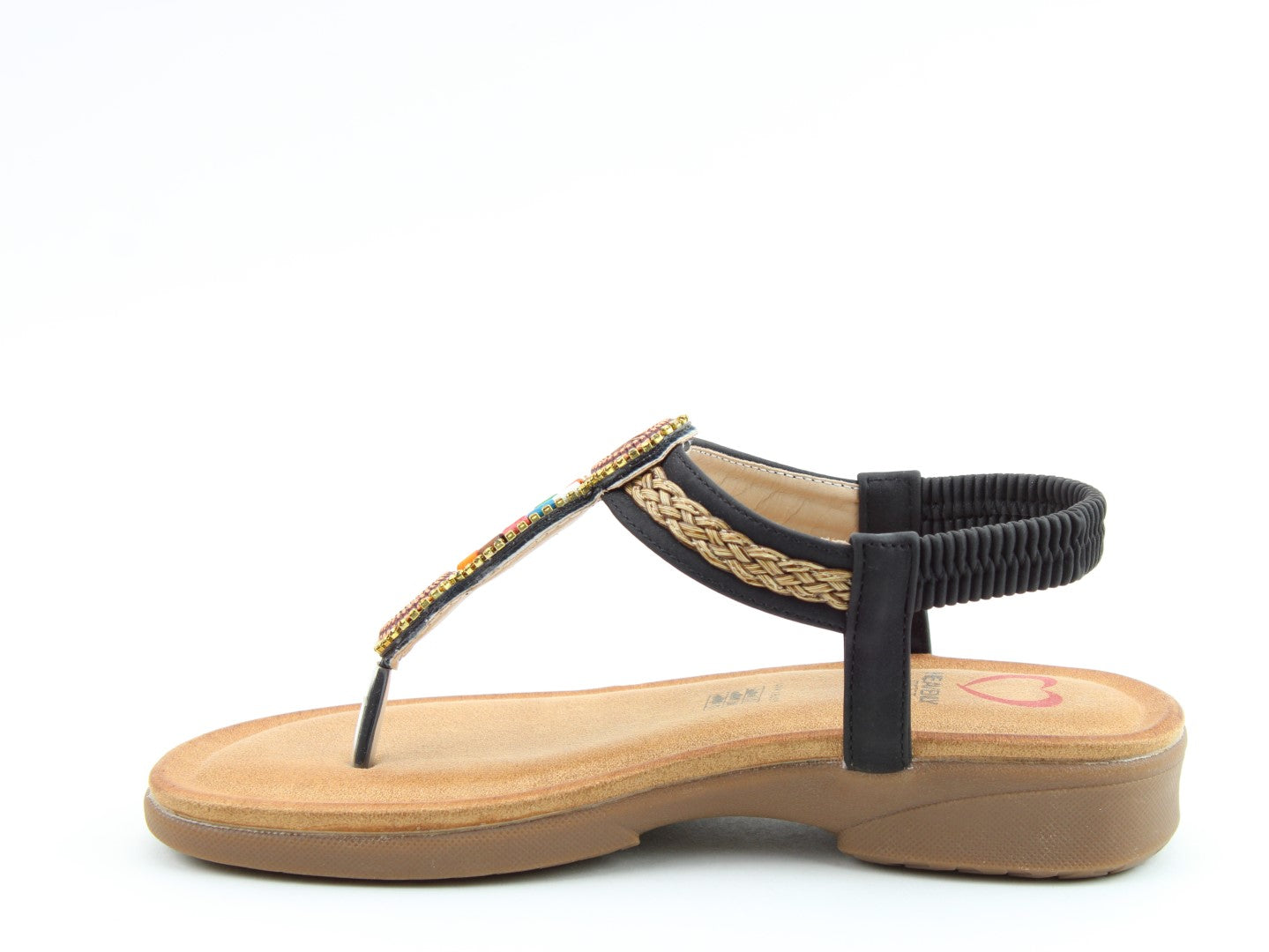 Step into summer with the vibrant Zing sandal from Heavenly Feet. This vegan-friendly T-bar design features colourful bead embellishments that instantly lift any outfit. The elasticated back strap makes slipping them on effortless, while the cushioned footbed keeps you comfortable all day long. A fun and practical choice for sunny days, seaside escapes, or casual weekends.